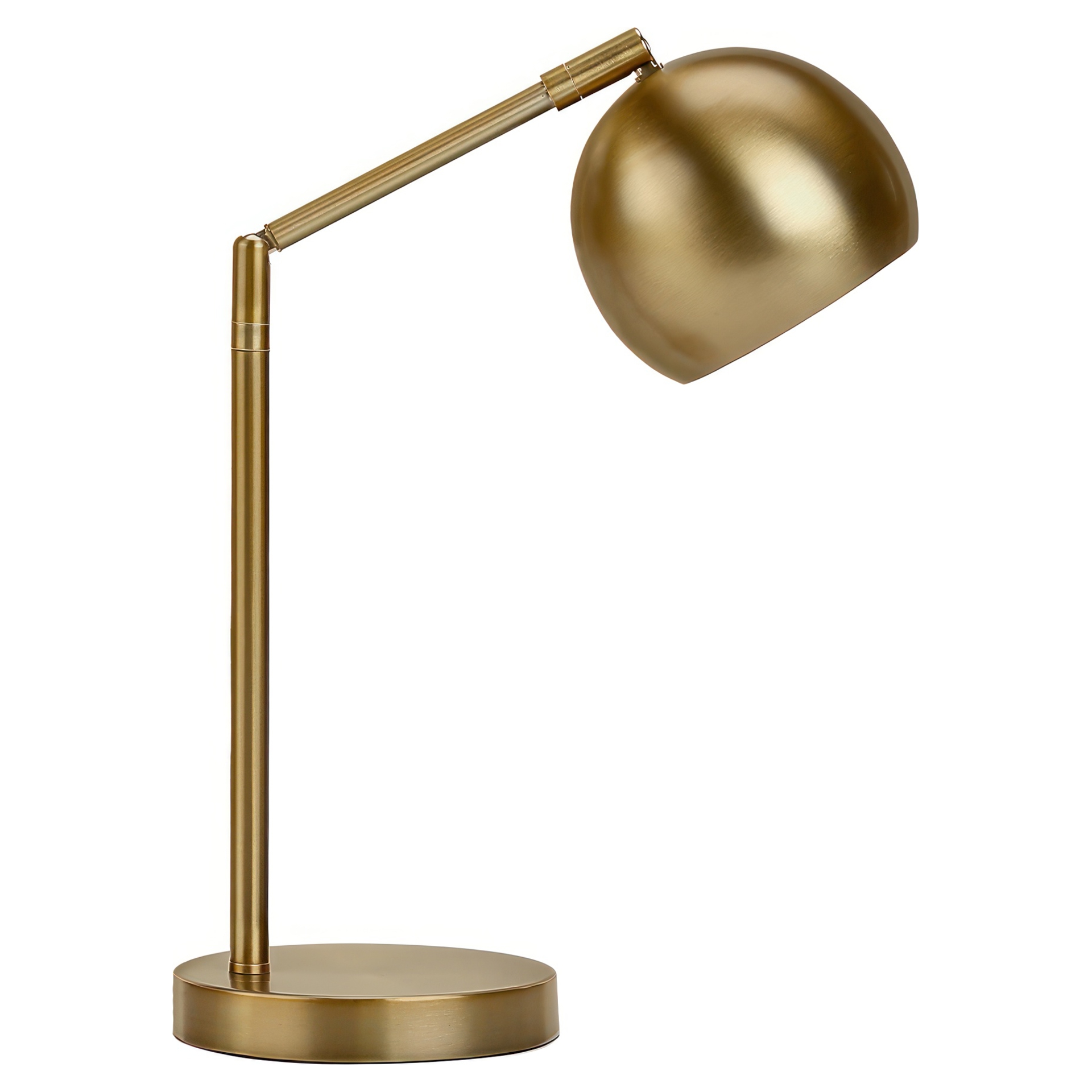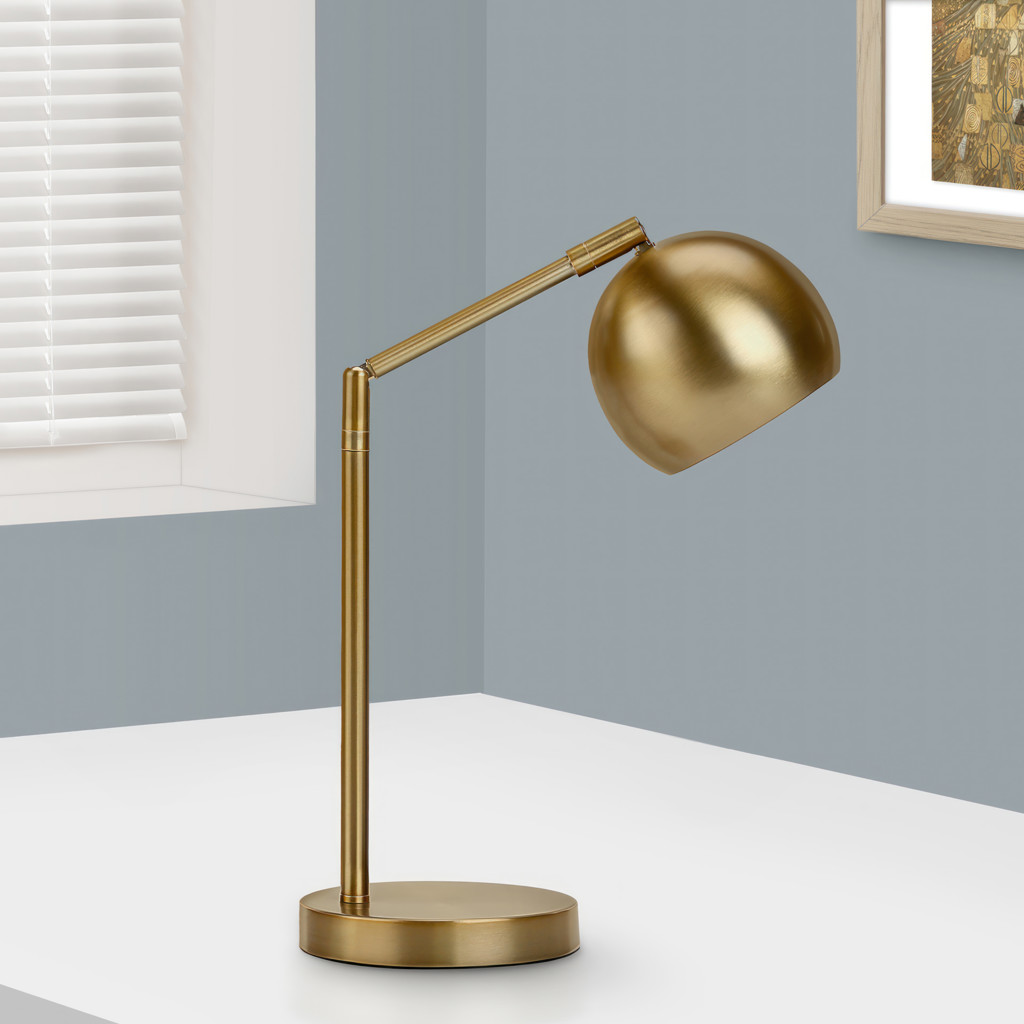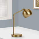 With a sleek gold metal base, and a gold shade attached to a flexible neck to get the perfect lighting angle, this contemporary light fixture will brighten a space with a touch of industrial retro-glam.