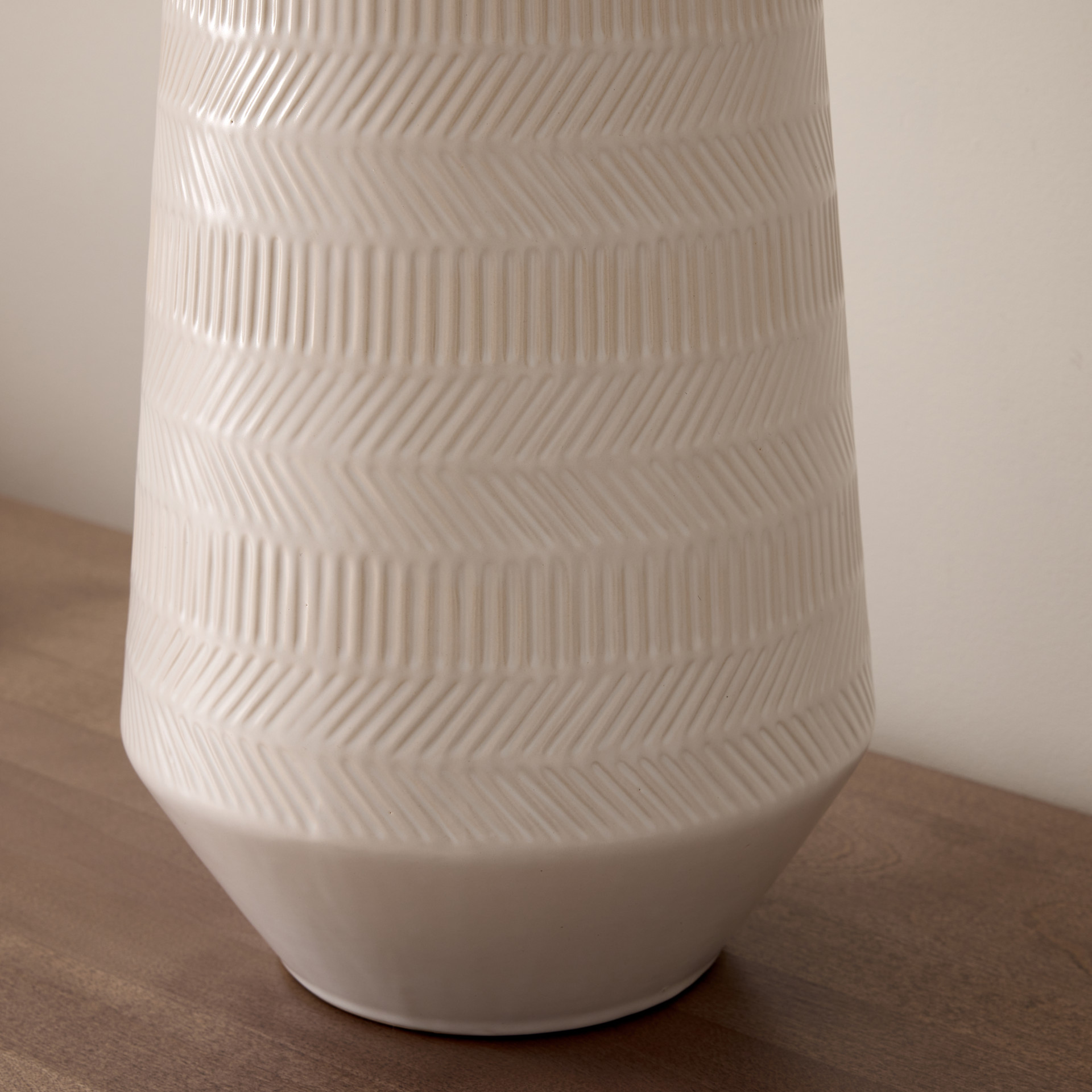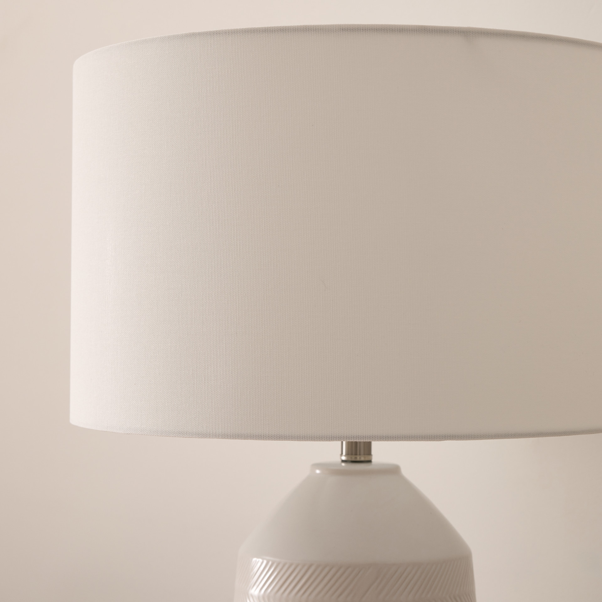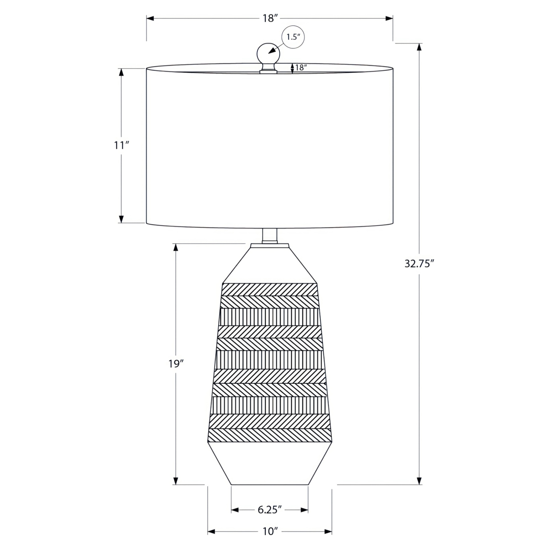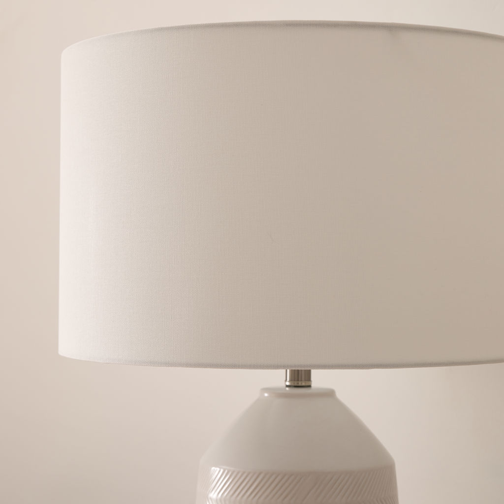 This beautiful, contemporary style 33"h table lamp with a cream ceramic textured base and ivory fabric shade, topped with a round ceramic finial is the perfect way to add some stylish and fashionable flair to any end or side table, or nightstand in your bedroom, living room and home office.