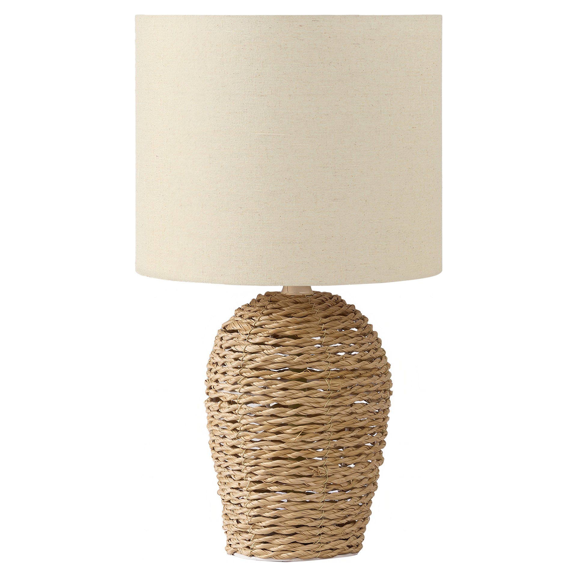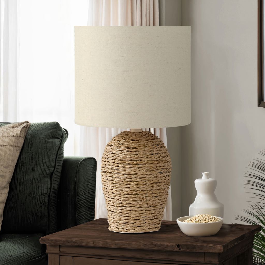 Illuminate your home with this natural rattan lamp and modern, linen-blend beige shade to create a cozy atmosphere for your reading nook or simply to add a touch of elegance to your decor.