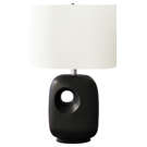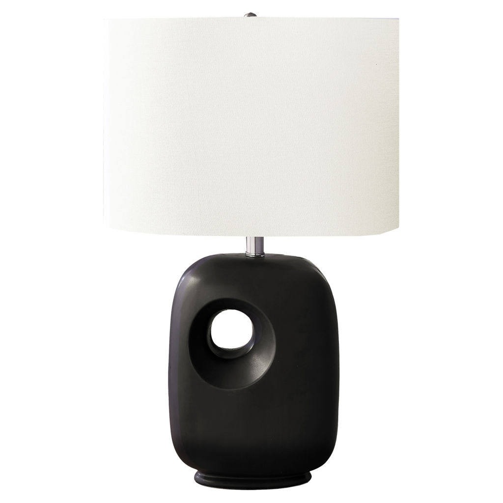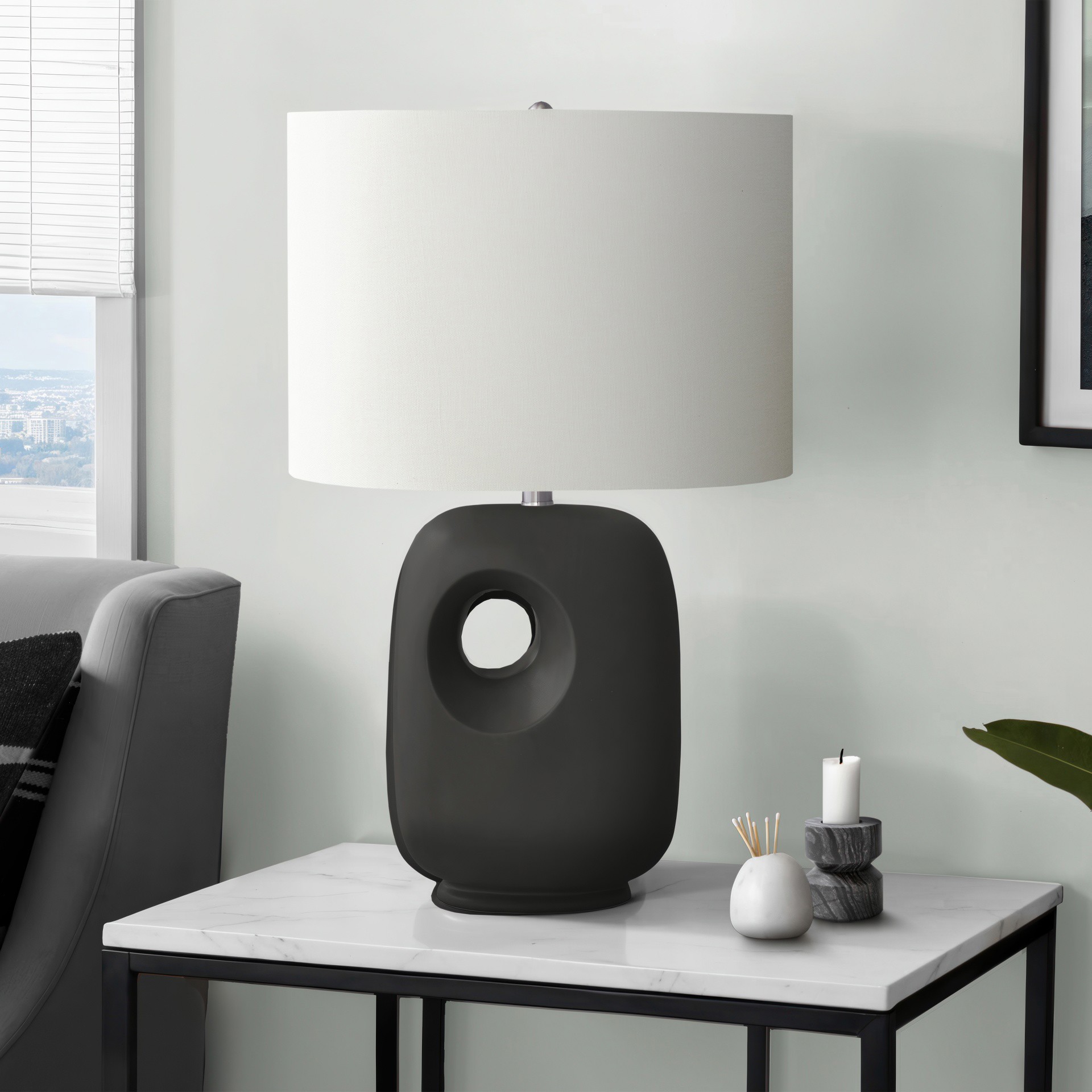 Illuminate your space with this modern and trendy 26"h table lamp with a sleek black ceramic base and topped with a linen-blend, ivory fabric shade.