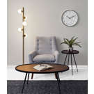 This floor lamp comes with five replaceable G9 LED bulbs that emit a total of 1000 lumens of warm ambient lighting. The stylish look is completed with a black fabric-covered cord.