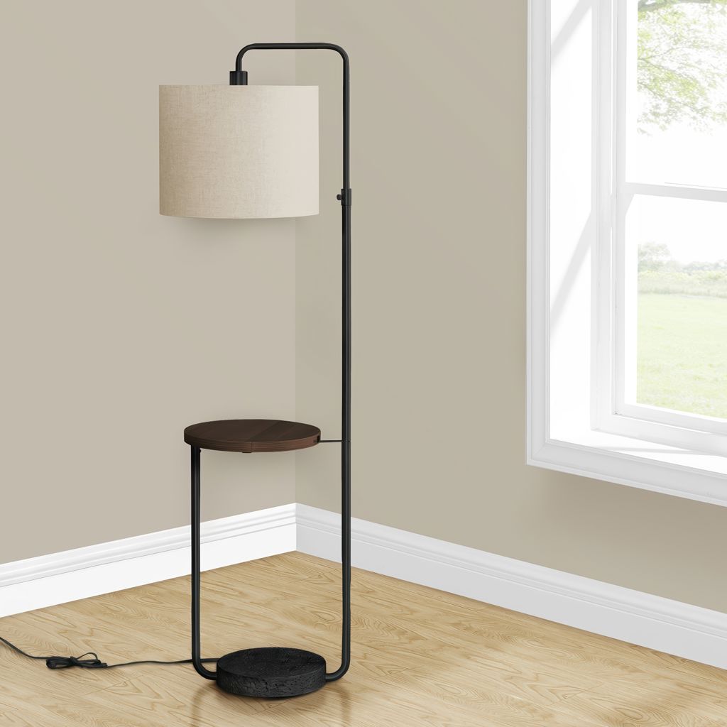 Elevate your space with the ultimate combination of style and functionality with our 67"h floor lamp in black metal with an ivory linen fabric shade.