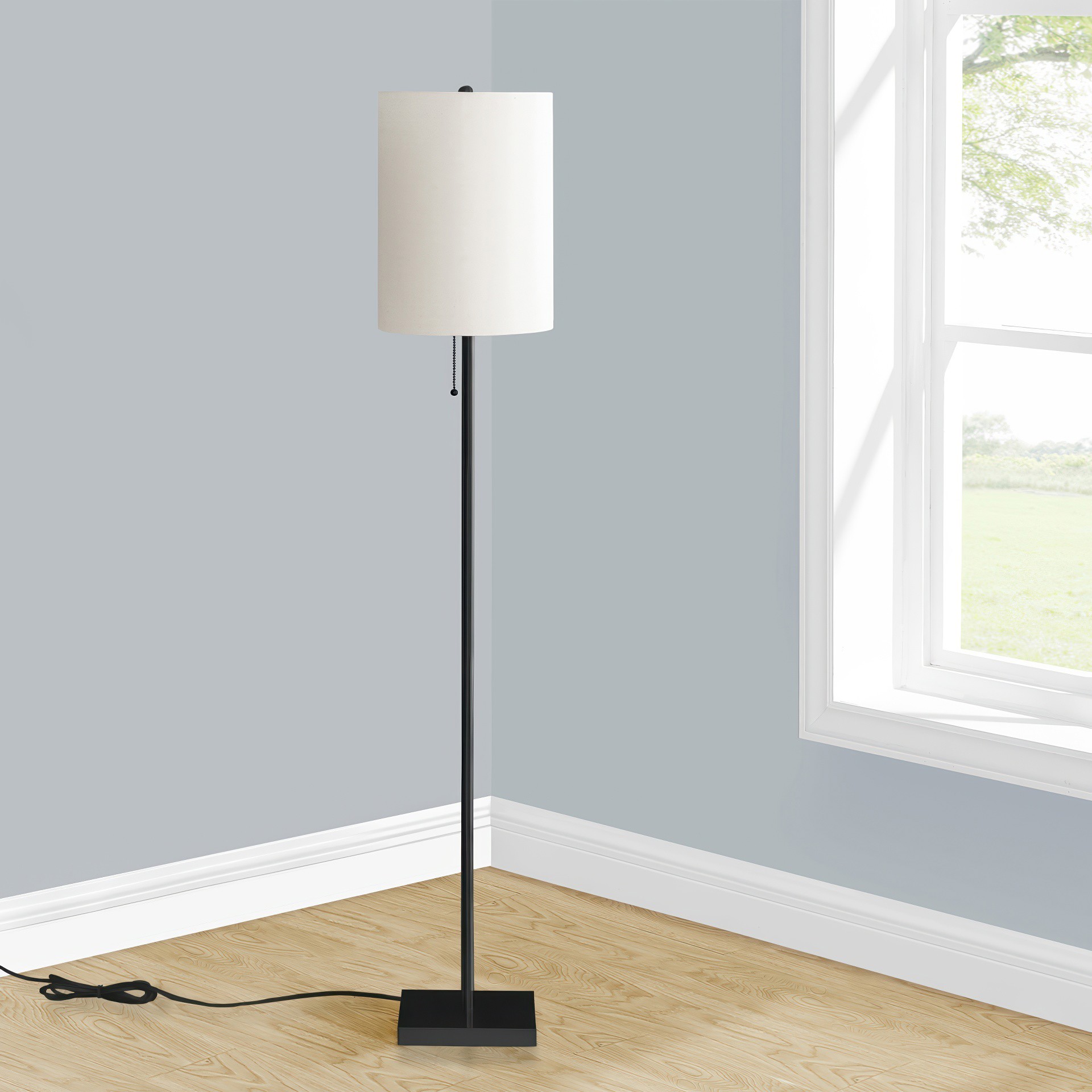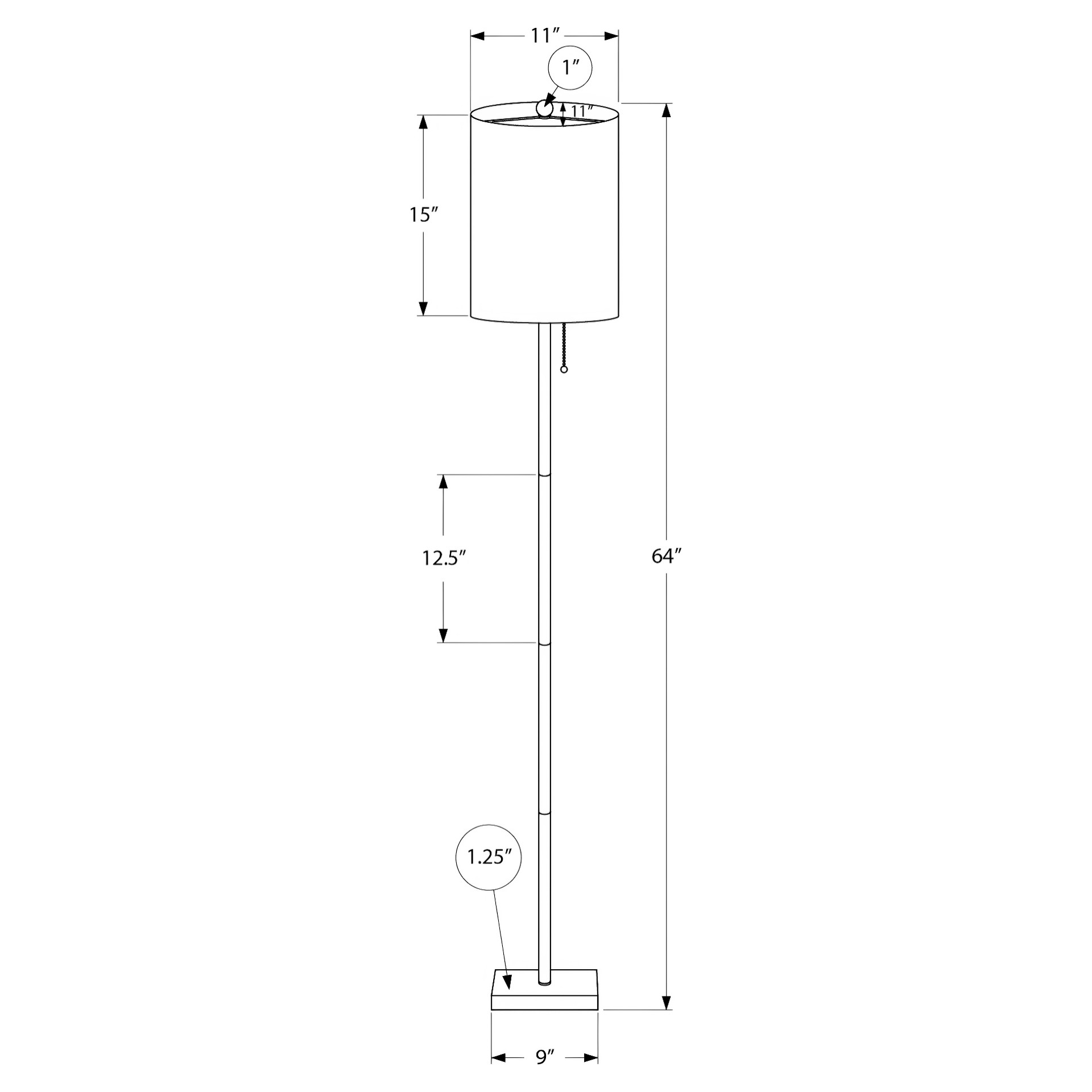 The simple contemporary design features a decorative ivory drum shade for a touch of sophistication. With a pull chain for an easy on/off operation, this lamp houses a single bulb up to 100W (not included), perfect for brightening up a corner of your living room, bedroom, or office to create some ambiance.
