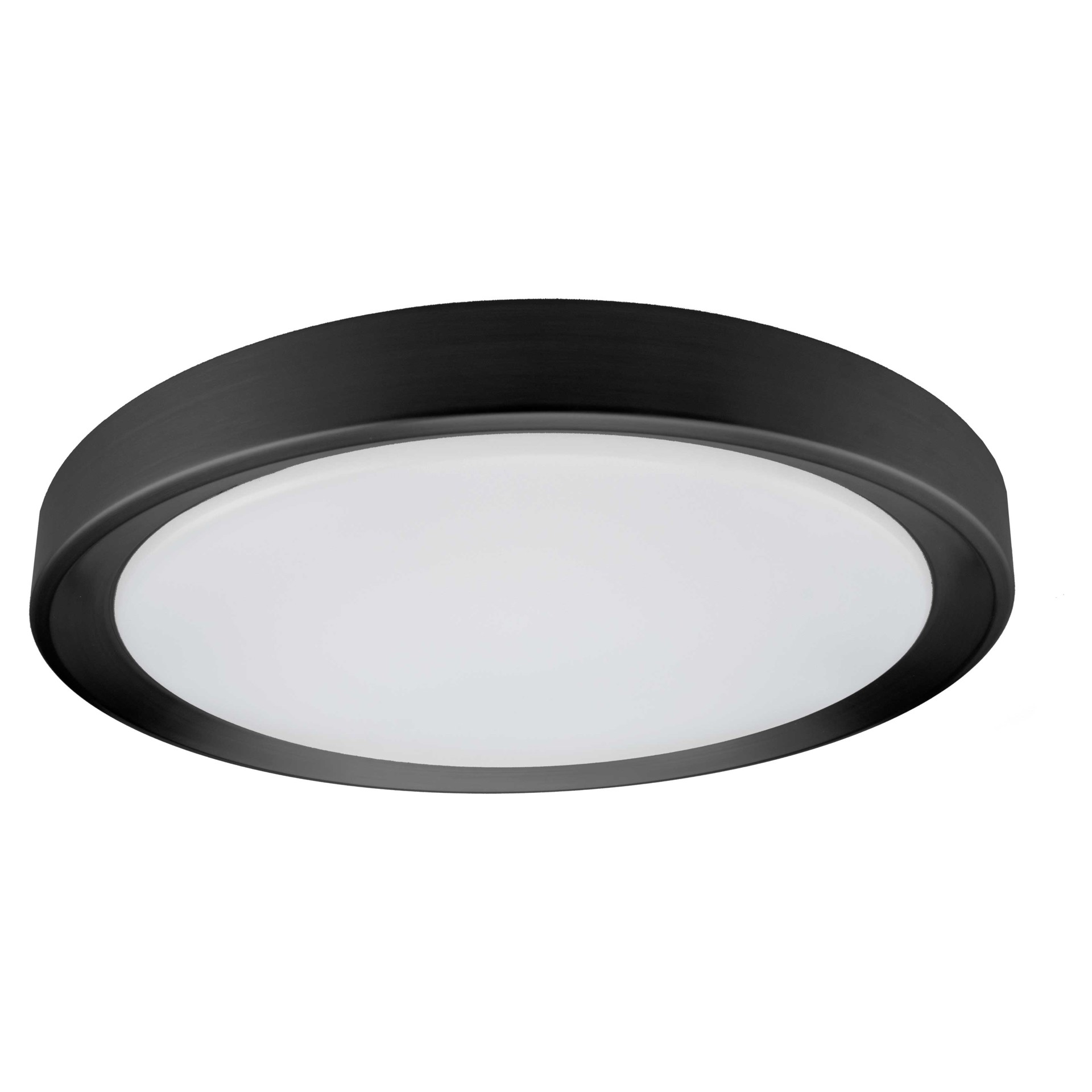 The Dainolite Modern Flynn recessed ceiling light, with sand painted black metal and white polystyrene ceiling plastic with 1 integrated LED light, max 24 Watts, is dimmable and UL approved for damp locations with a 5-year limited warranty.
