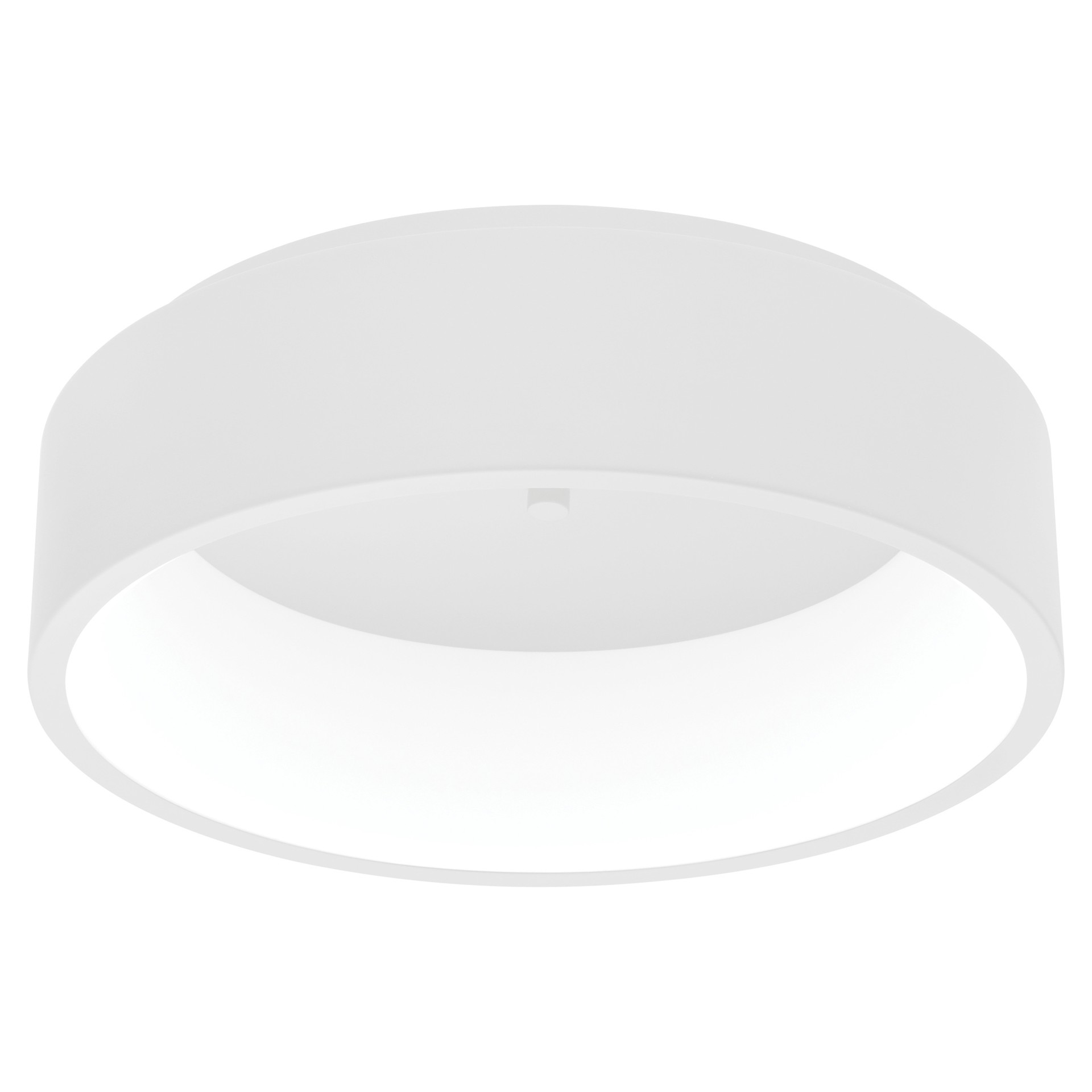 The Marghera 1 ceiling light features a white metal shade with a white acrylic diffuser that delivers a warm ambient glow from the 28W of Integrated LED.