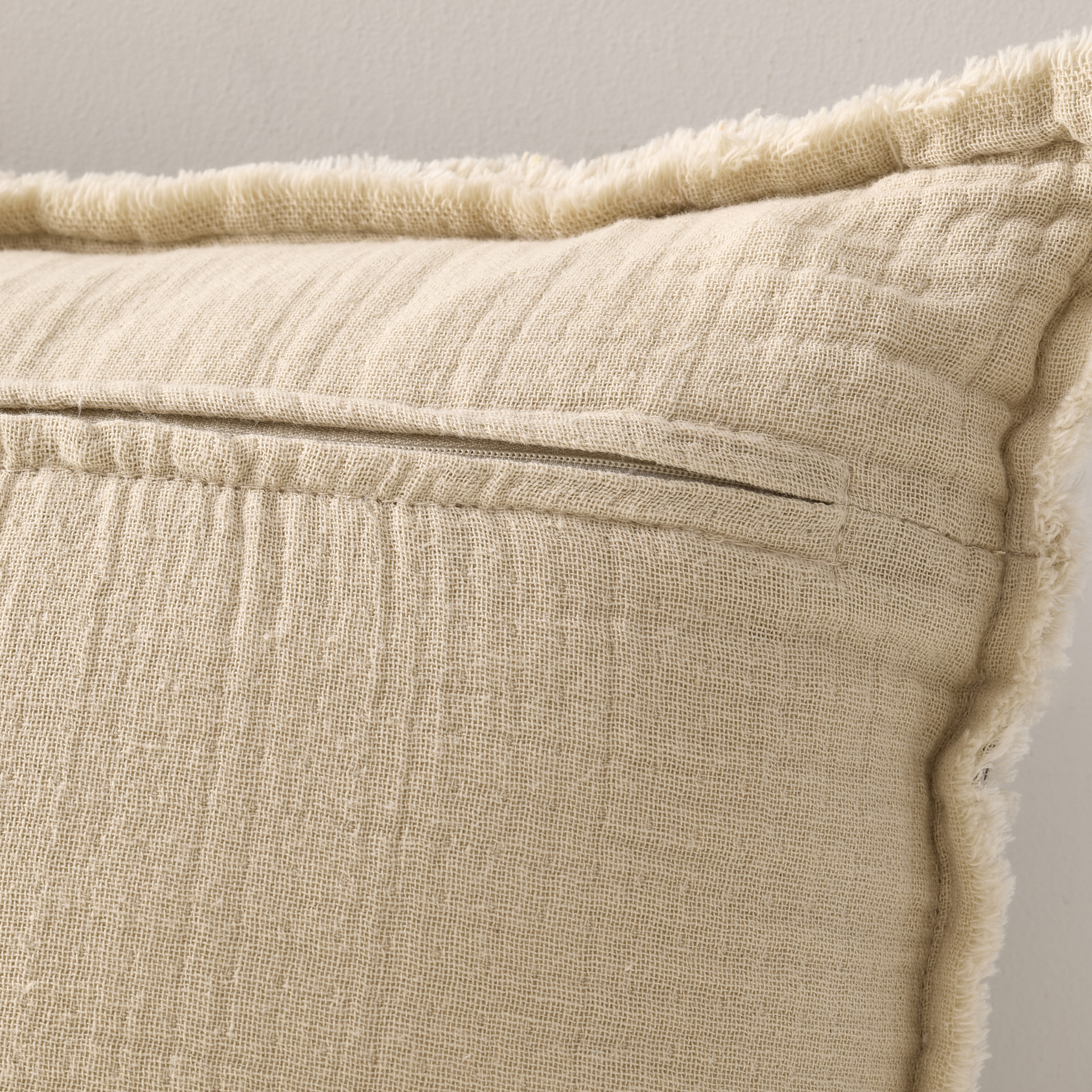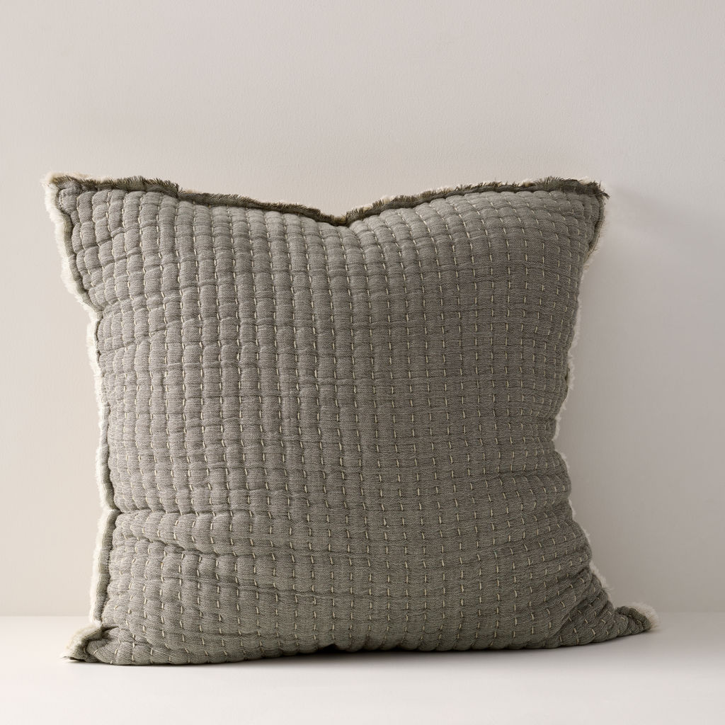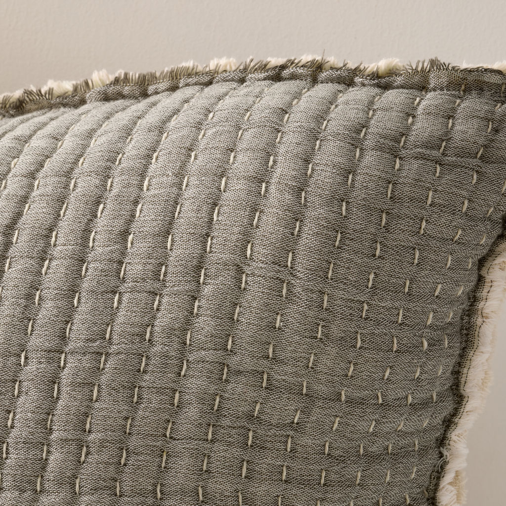 Our Kantha 20" square pillow is made from two layers of soft, stonewashed 100% cotton that sandwich a layer of cotton yarn in between and finished with stitching. This lends a comfortable and cozy feel to these pillows. It adds texture and warmth when curled up with a book or a stylish layer on your bed or couch.