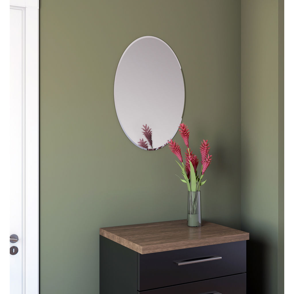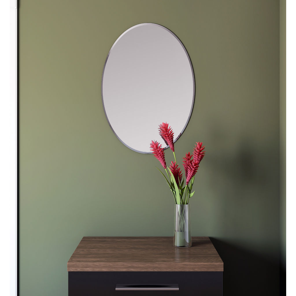 This frameless bevelled mirror has an elegant style that will complement any space. Its sleek, modern design blends perfectly with any décor. Renew the style of your bathroom, bedroom or hallway with this durable, elegant mirror.