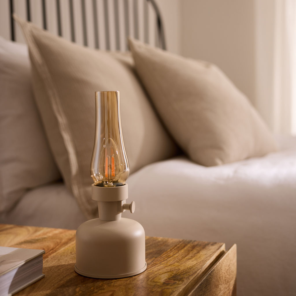 Designed for both indoor and outdoor use, this lamp is an effortless way to bring warm, atmospheric lighting to your bedside table, dining space, patio, or reading nook.