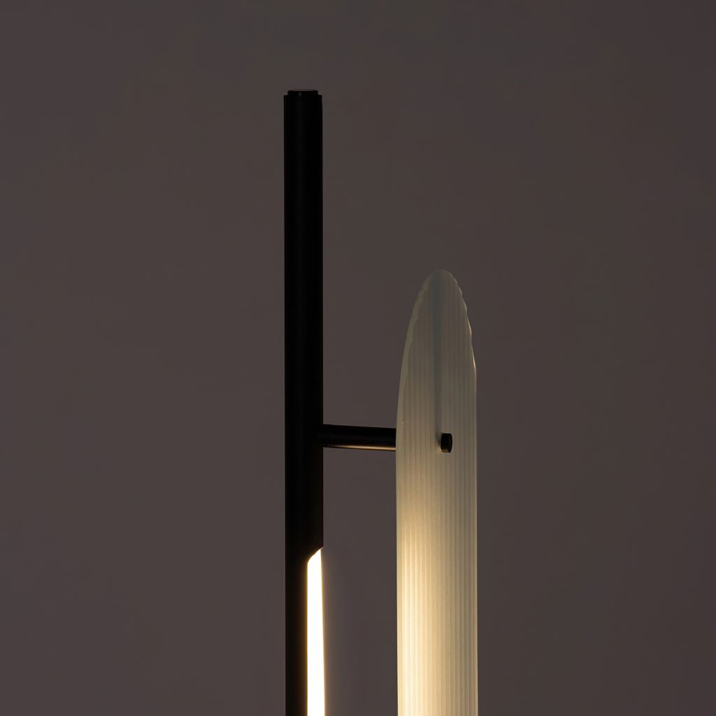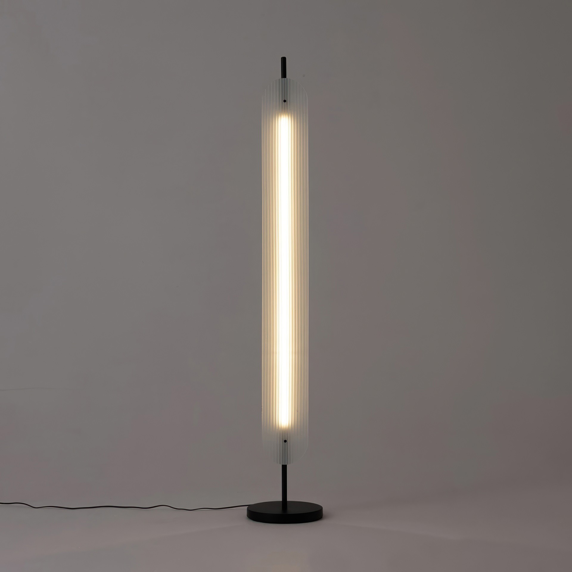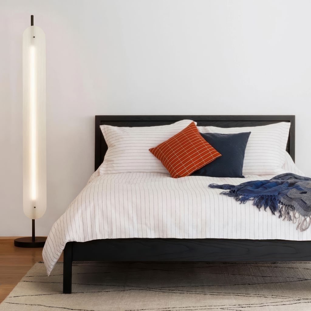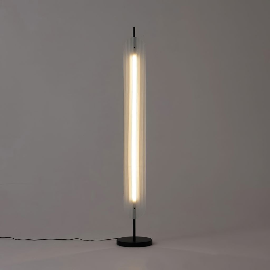 Created in collaboration with Toronto-based design studio, Anony, the Fount floor lamp is made from a rippled frosted glass paired with an aluminum base.