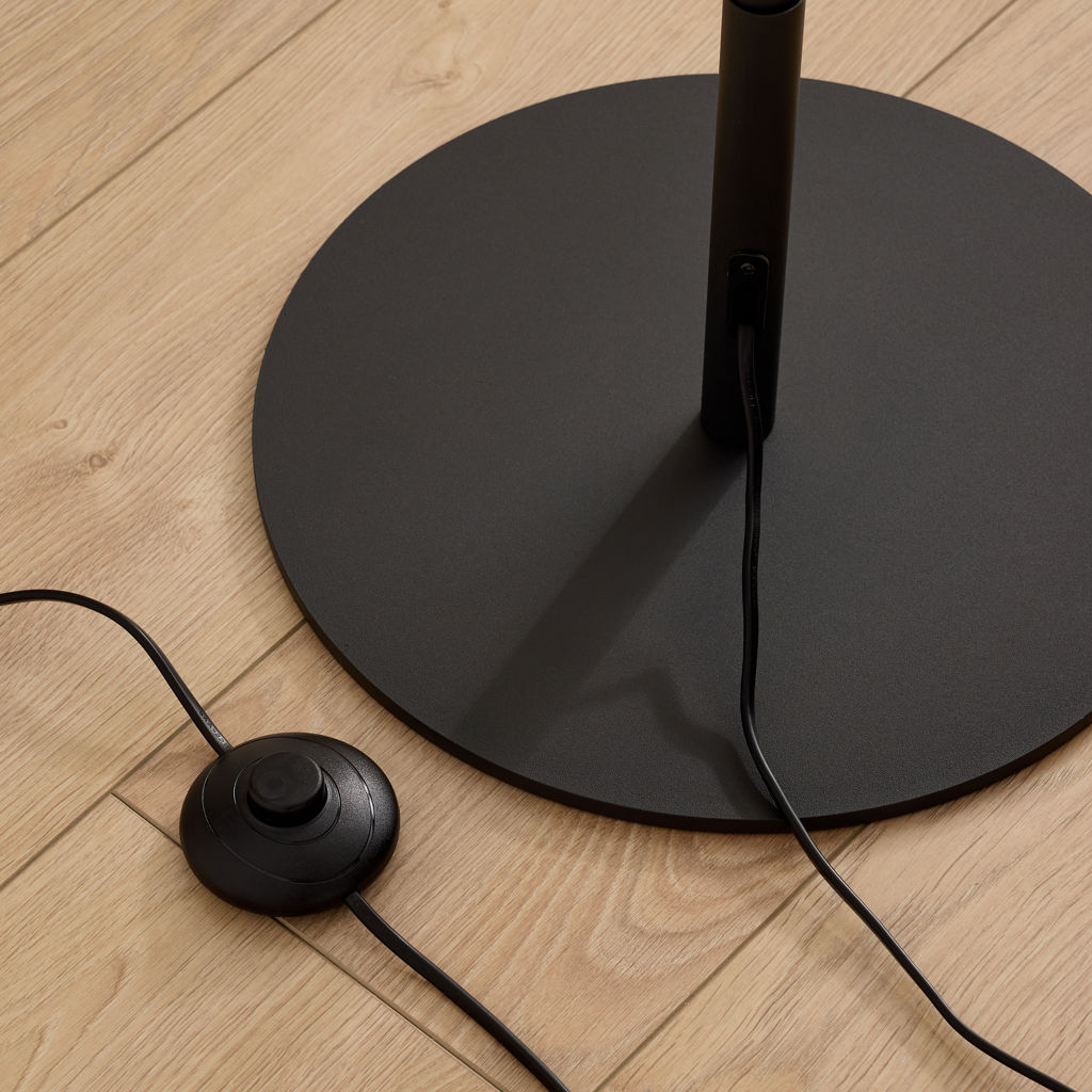 The combination of its unique shape and matte black finish gives the lamp a distinctive and modern character.