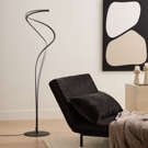 Made up of two continuous light elements, this floor lamp becomes an instant eye-catcher in any living space. Beyond its sculptural look, it also offers practical features: a touch-sensor dimmer allows continuous adjustment of both brightness and light color.