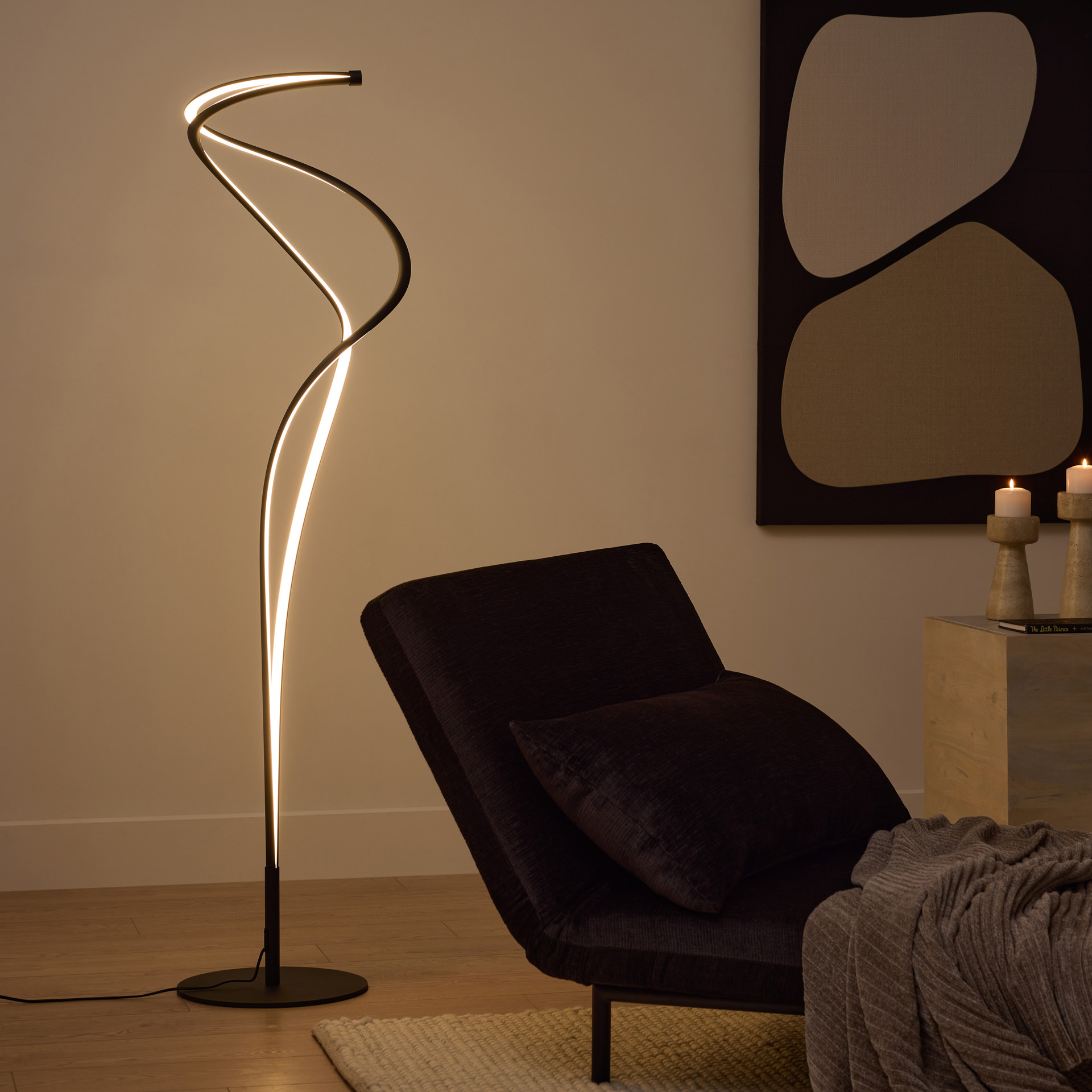 Twisted LED lamps impress with their striking curved design.