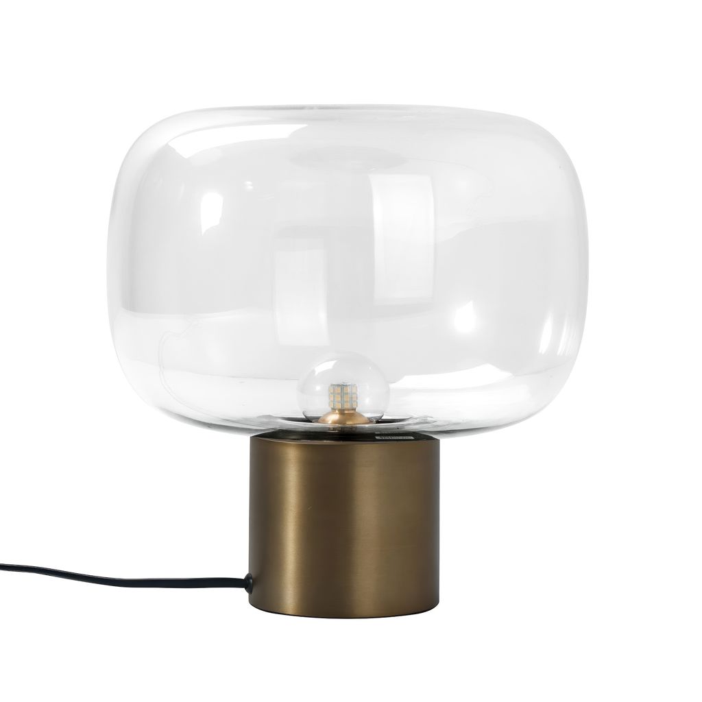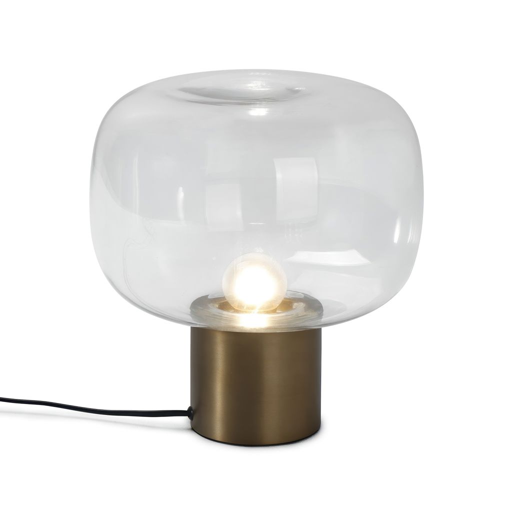 The Retro Chic Table Lamp is a stylish and elegant lighting fixture that will add a touch of sophistication to your space. The lamp features a clear hand blown glass shade that provides a warm and inviting glow, creating a cozy atmosphere in any space.