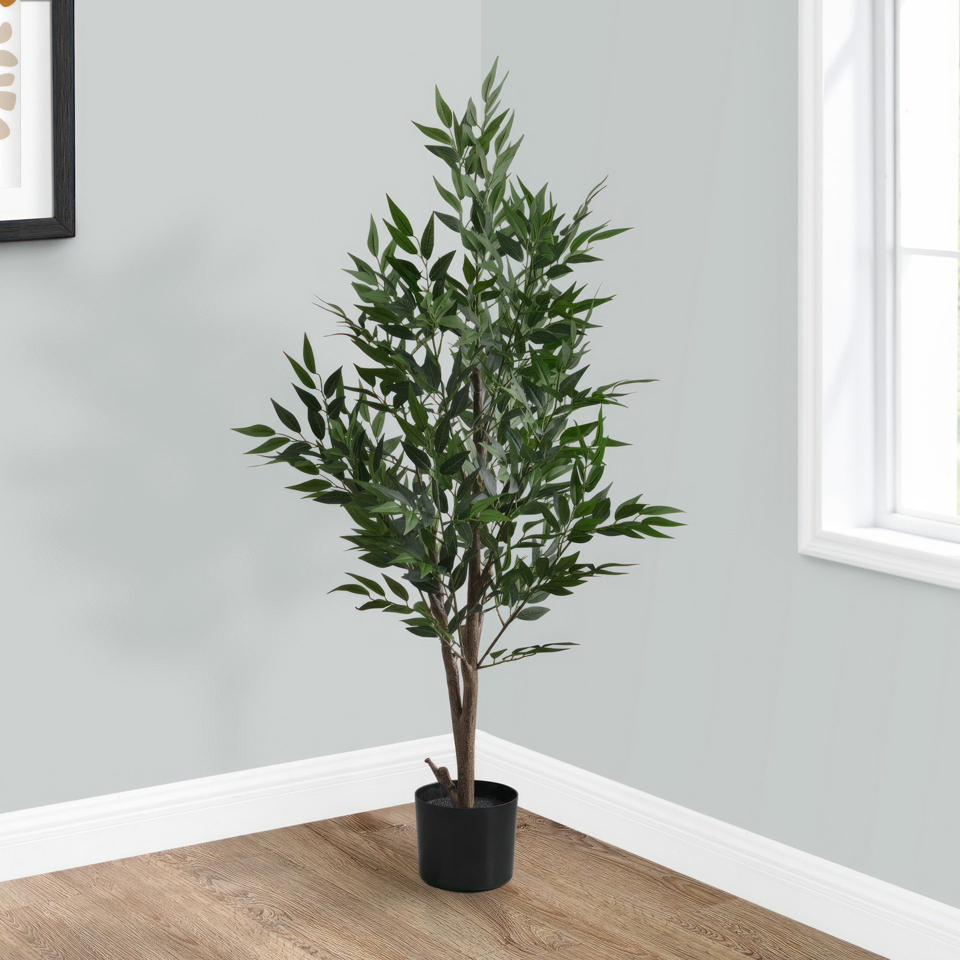 Brighten up any corner of your home or office with this 47" tall faux acacia tree in a simple and modern 5" plastic pot.