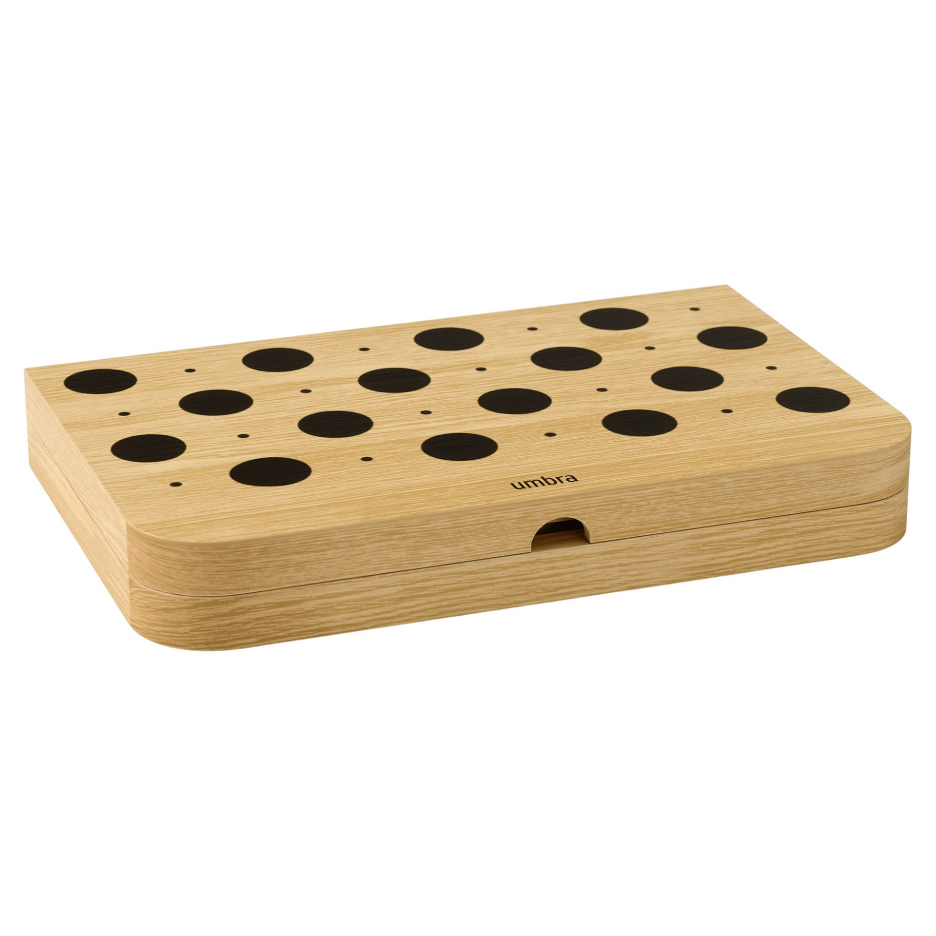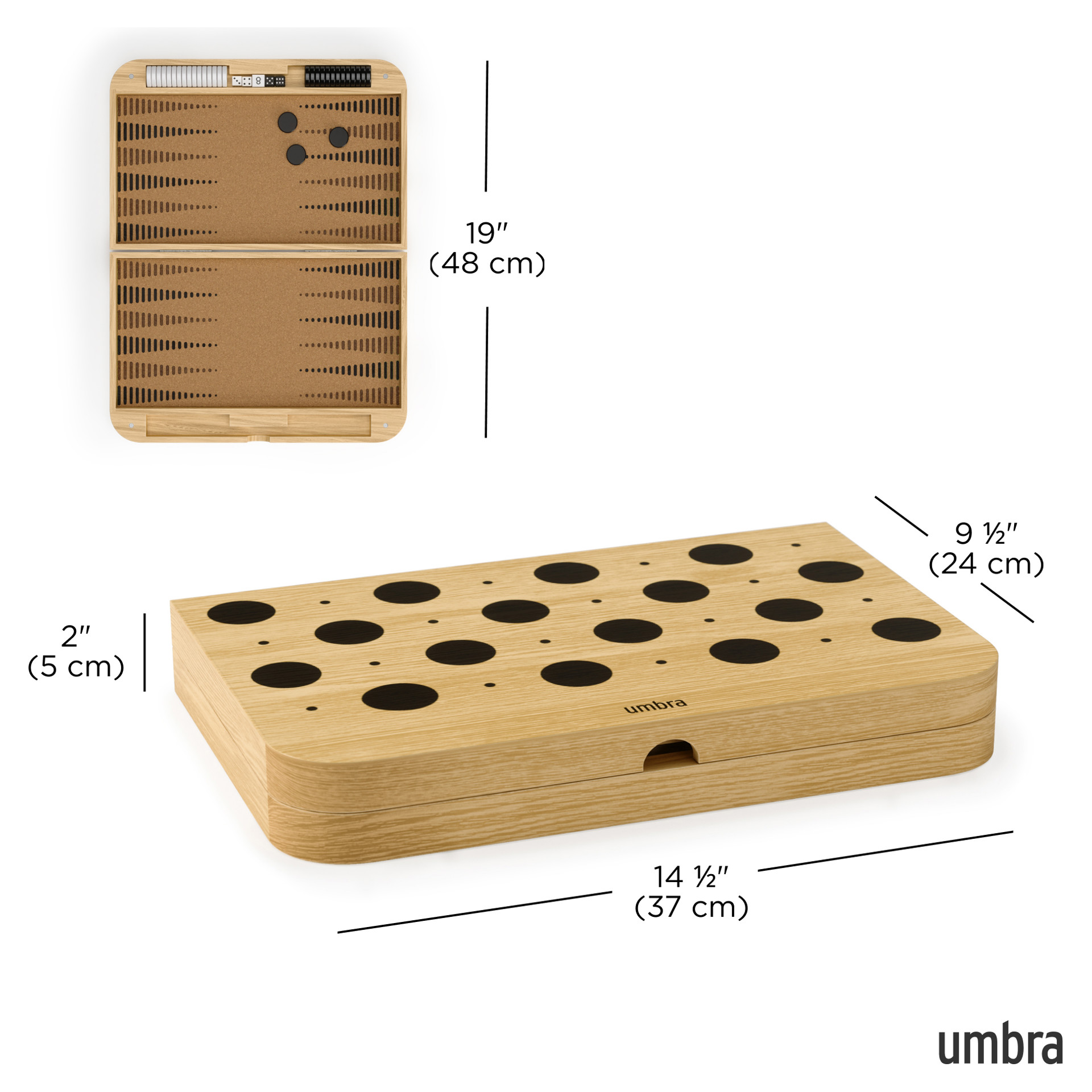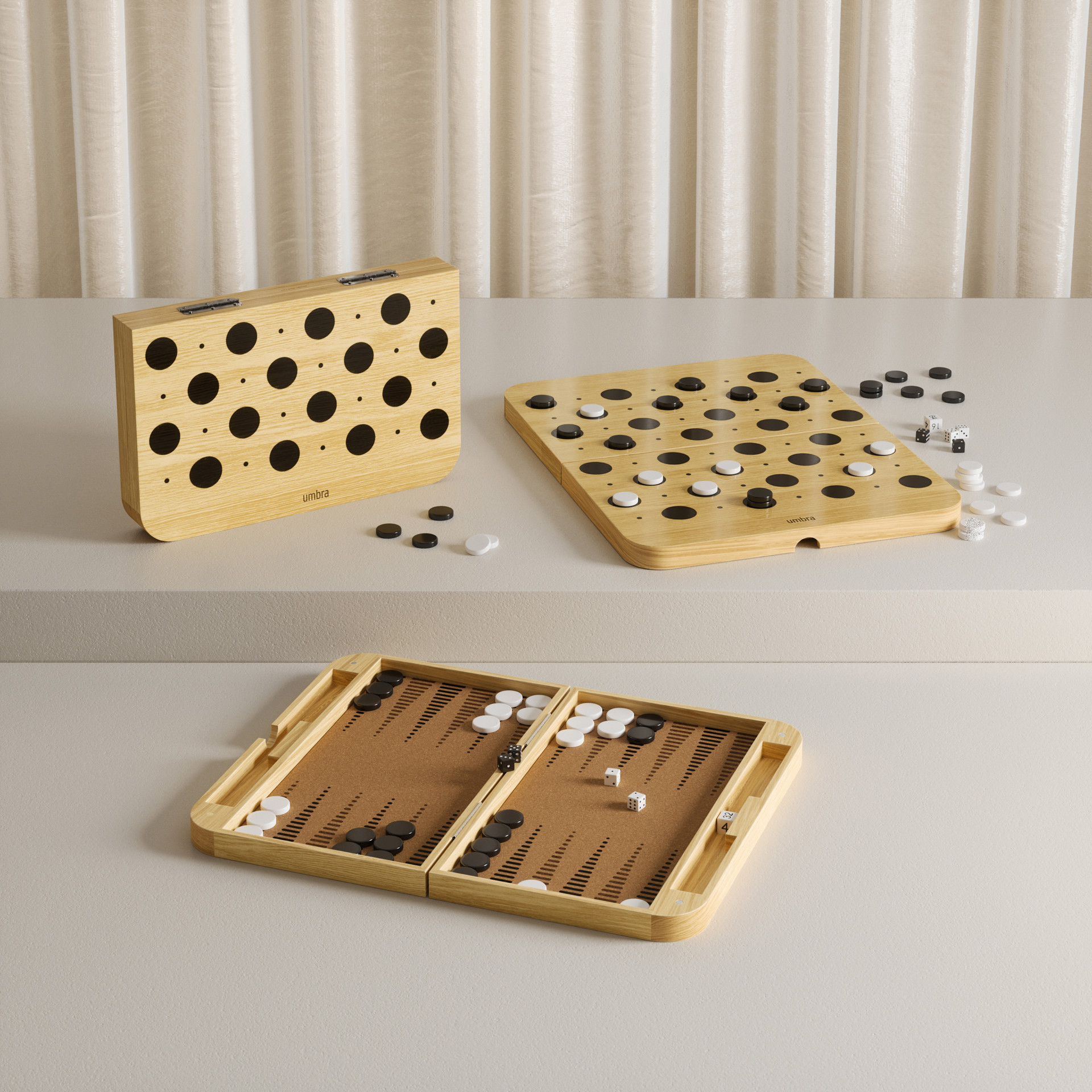 Blitz folds easily in half for convenient storage, transport, or display. Open it to reveal a checkers board printed on warm ash wood, with a soft cork interior for a pleasant playing experience.