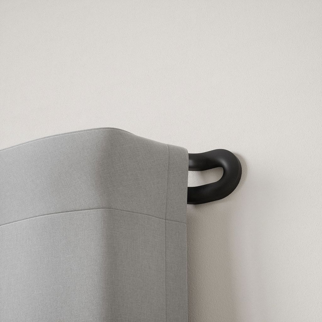 A decorative room-darkening window solution, Midnight features an innovative wrap-around design which helps prevent light leakage. Allowing your curtain or drapery panel to rest directly against the wall, wrap the panel around the curved end of the rod and tuck it behind the bracket to eliminate exterior light from seeping in.
