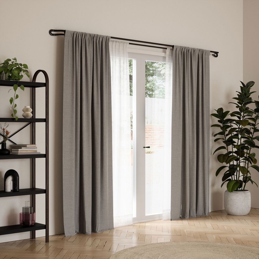 Midnight has a strong and stable 3/4 inch diameter, constructed to hold curtains from light to medium weights, with a maximum capacity of 22lbs. This double curtain rod can support 2 curtains and is available in multiple sizes.