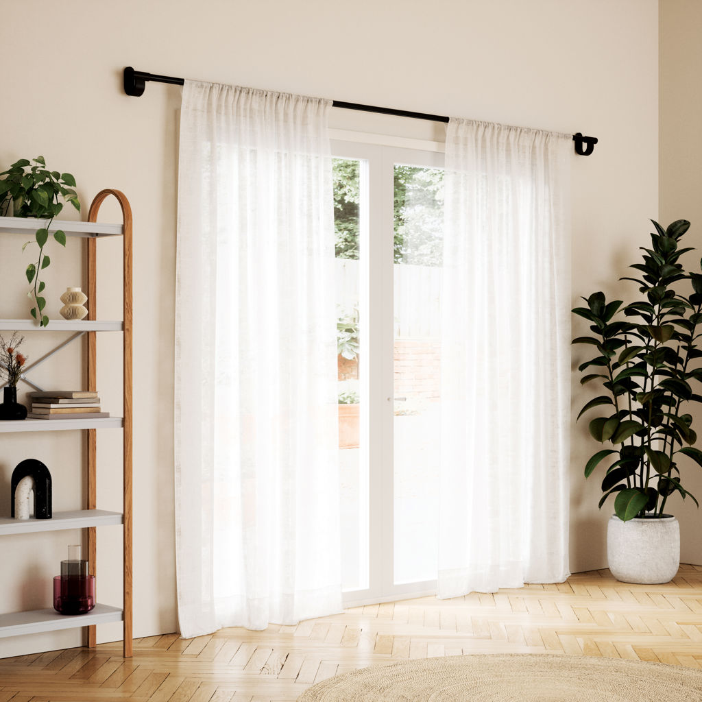 The 1“ (2.5 cm) diameter Bellwood curtain rod is adjustable to fit a wide range of windows, from 42” to 120” (107 - 305 cm), and supports curtains weighing up to 22 lb (10 kg).