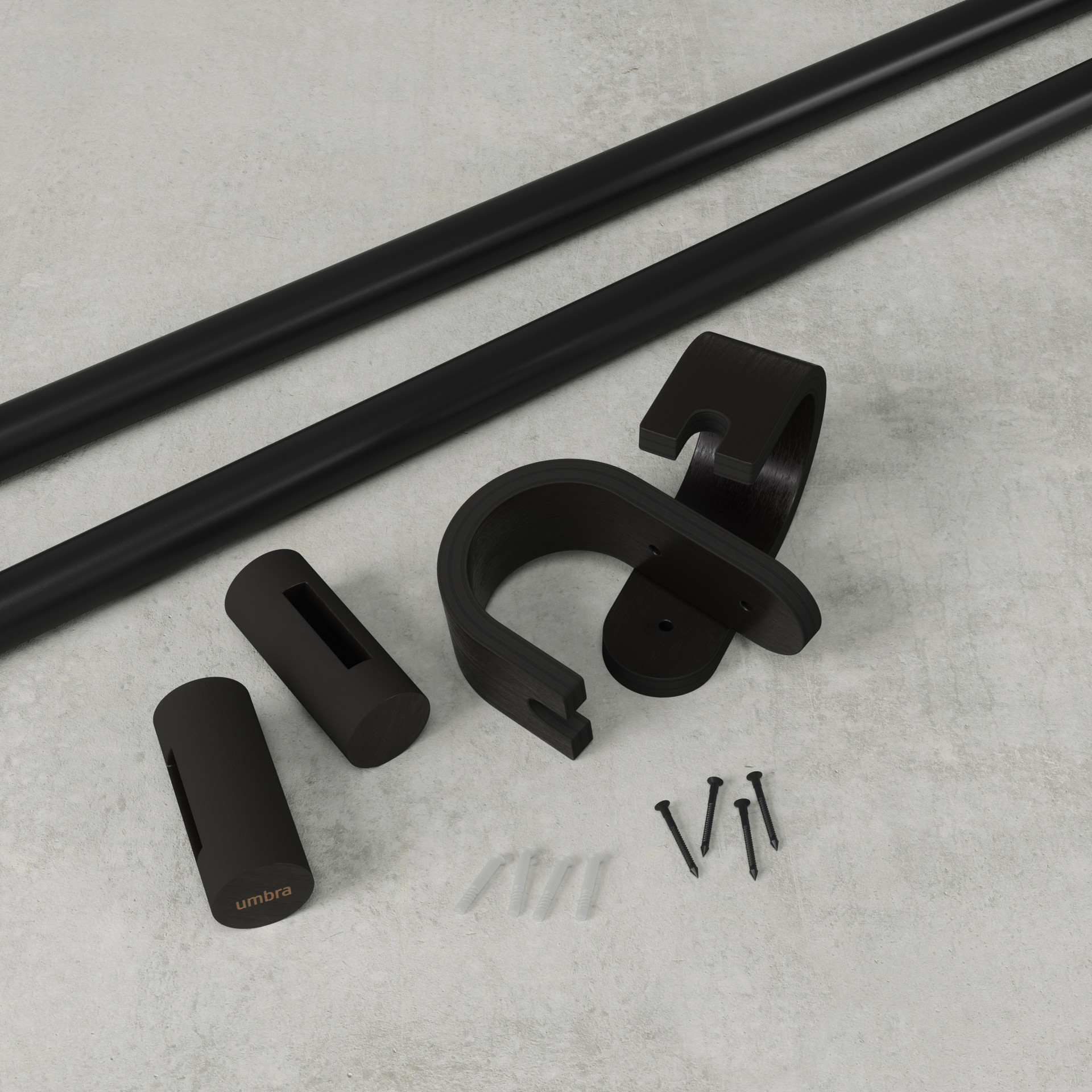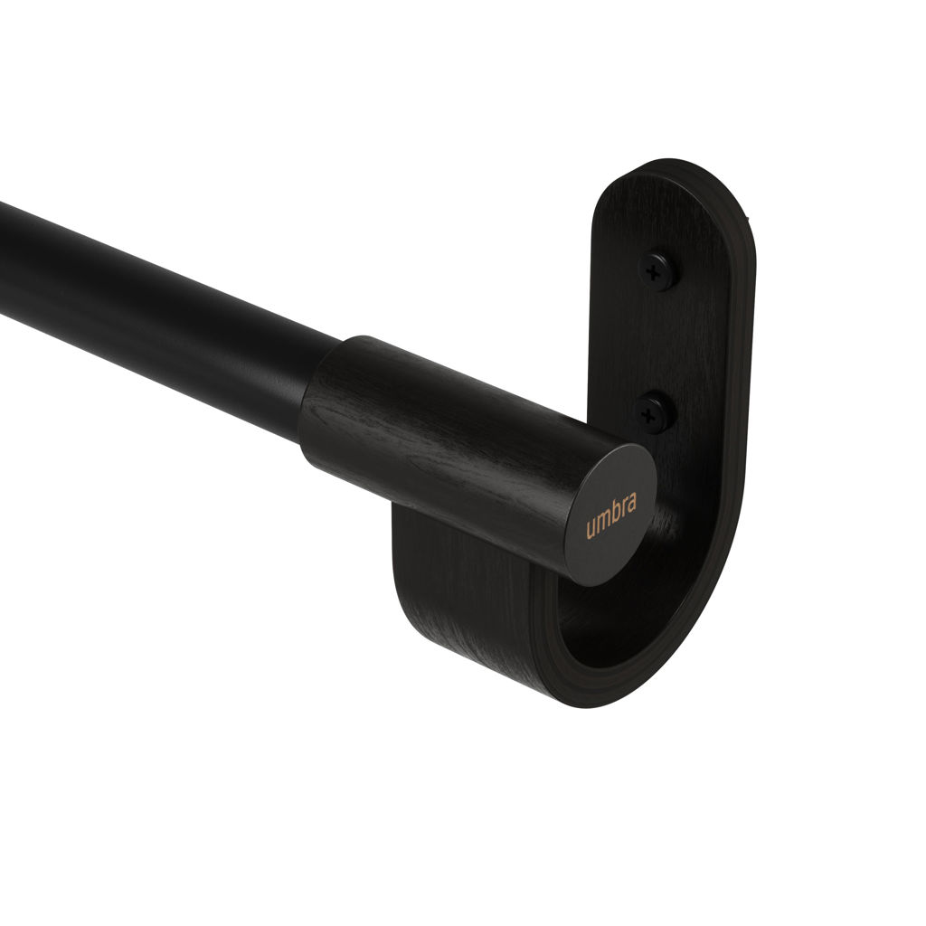 With its metal rod, wooden end caps and matching wall brackets, Bellwood presents modern lines with an eye-catching, industrial touch.