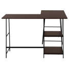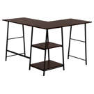 This desk is 100% functional, starting with its spacious workspace in a dark brown espresso finish. The black metal easel-style base supports 2 open shelves that can be used to hold books, storage boxes or other decorative items. This compact L-shaped writing desk with industrial design optimizes space and storage so you can maximize your productivity.