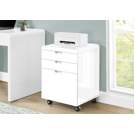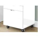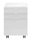 Complete your workstation with this compact and functional mobile file cabinet with a modern white gloss finish. Easy on the eyes, it can be placed anywhere thanks to smooth caster wheels (2 locking, 2 non-locking).
