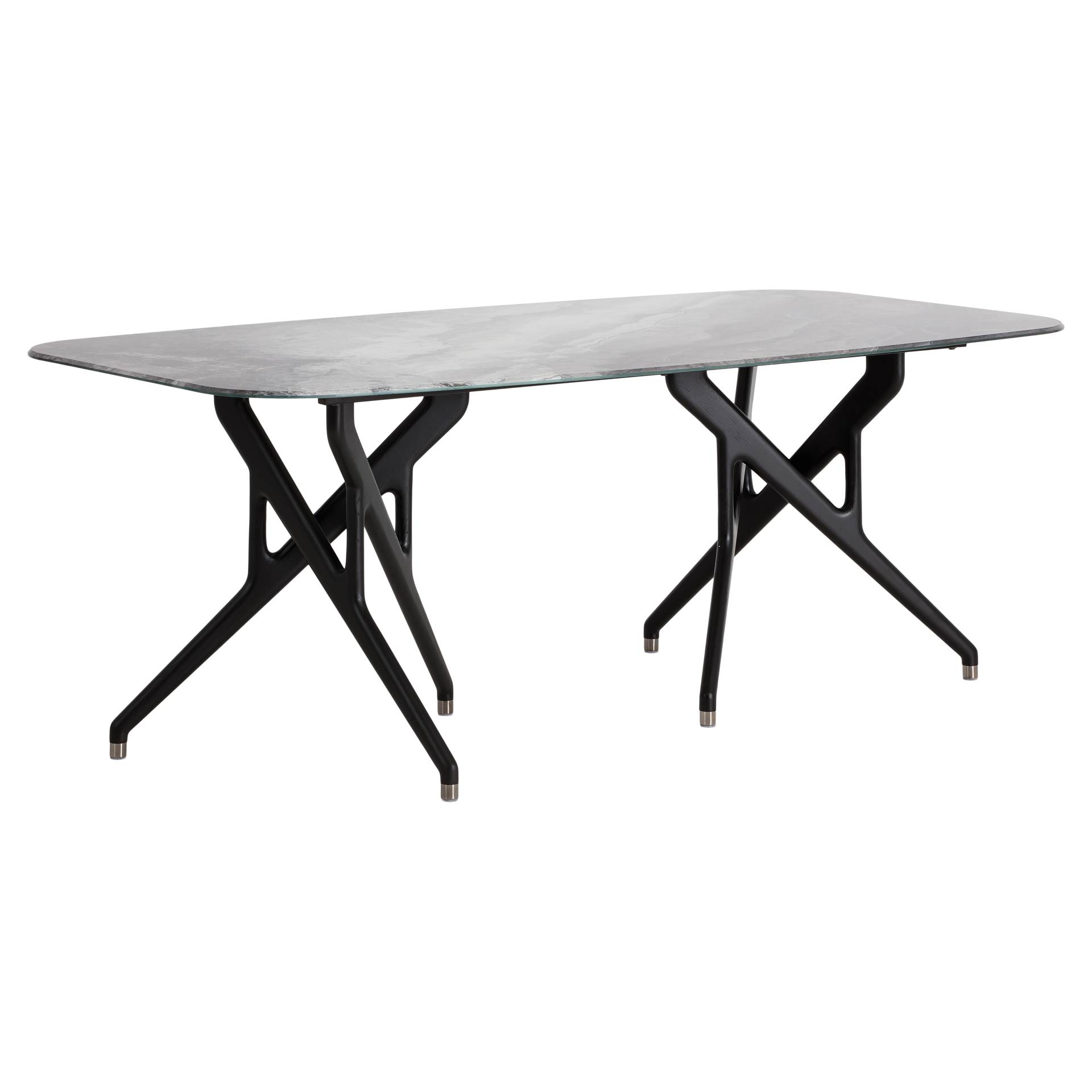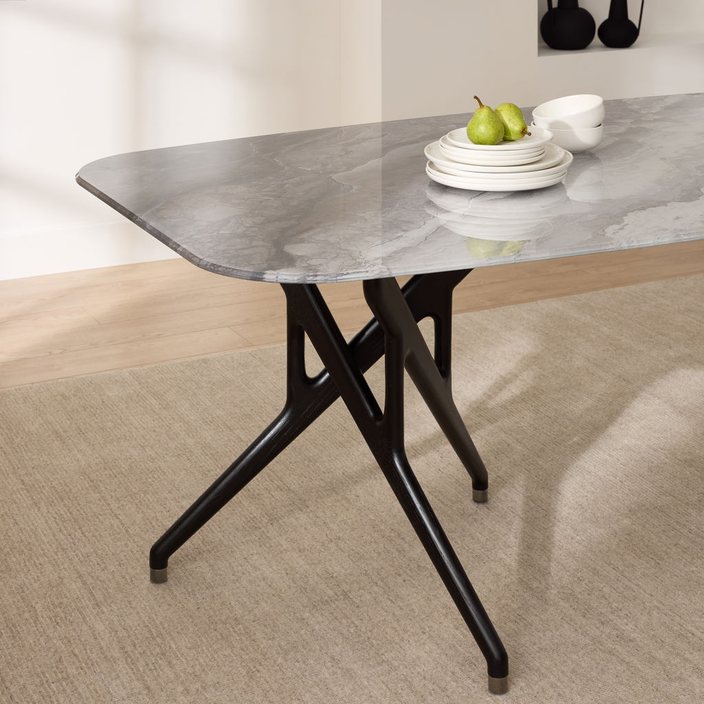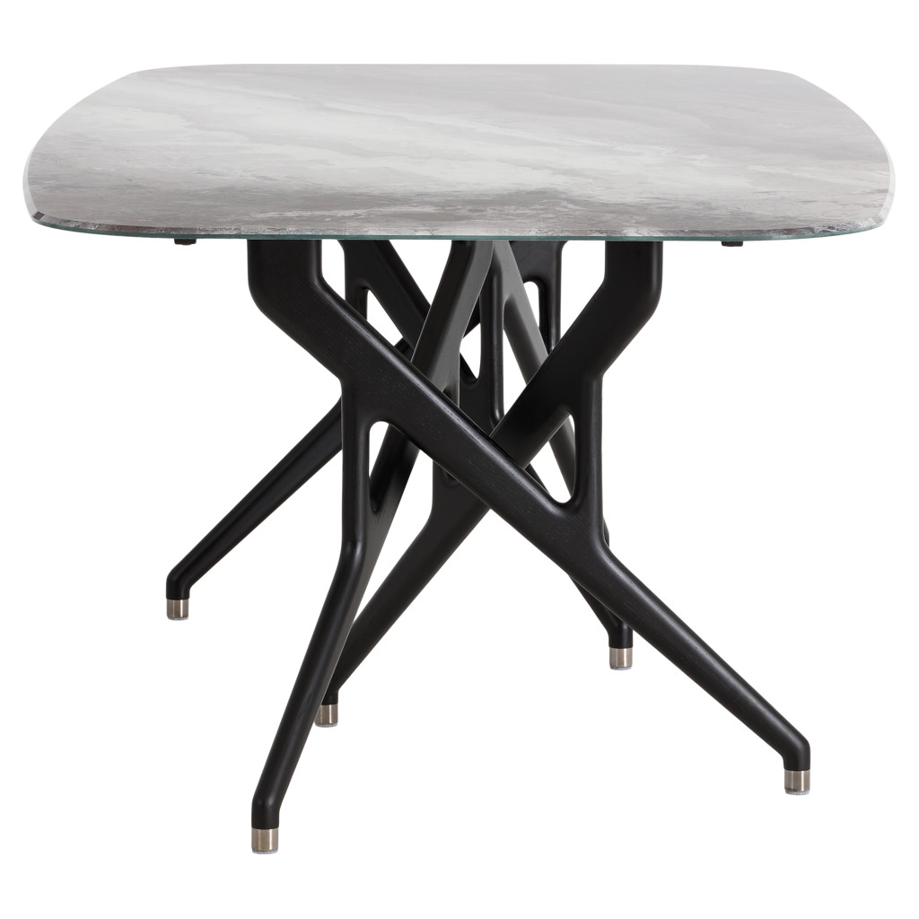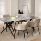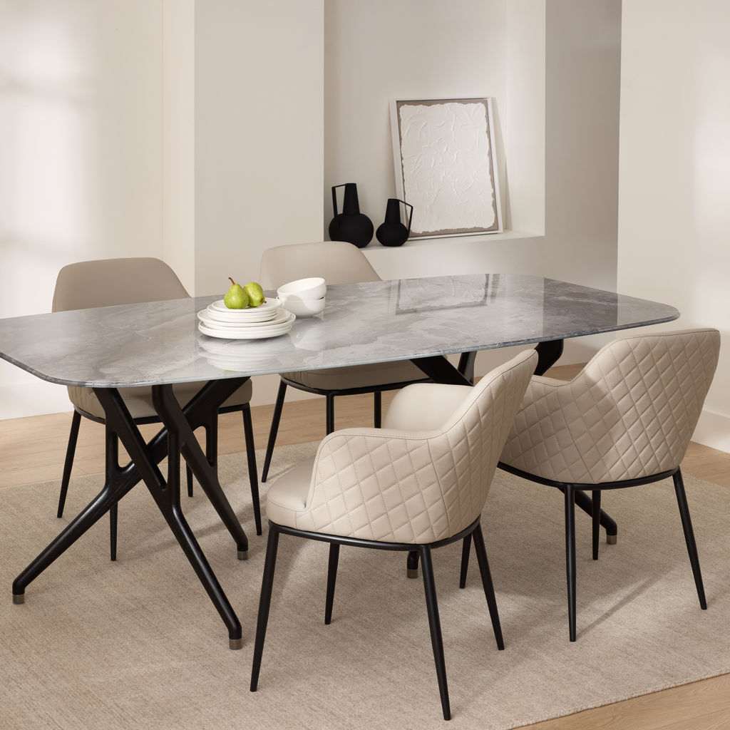 Experience the perfect blend of elegance and comfort with this sophisticated dining set. The sleek ceramic table offers a spacious, durable surface, ideal for family meals or gatherings with friends. Its distinctive X-shaped base adds a touch of modern design to your dining space.
