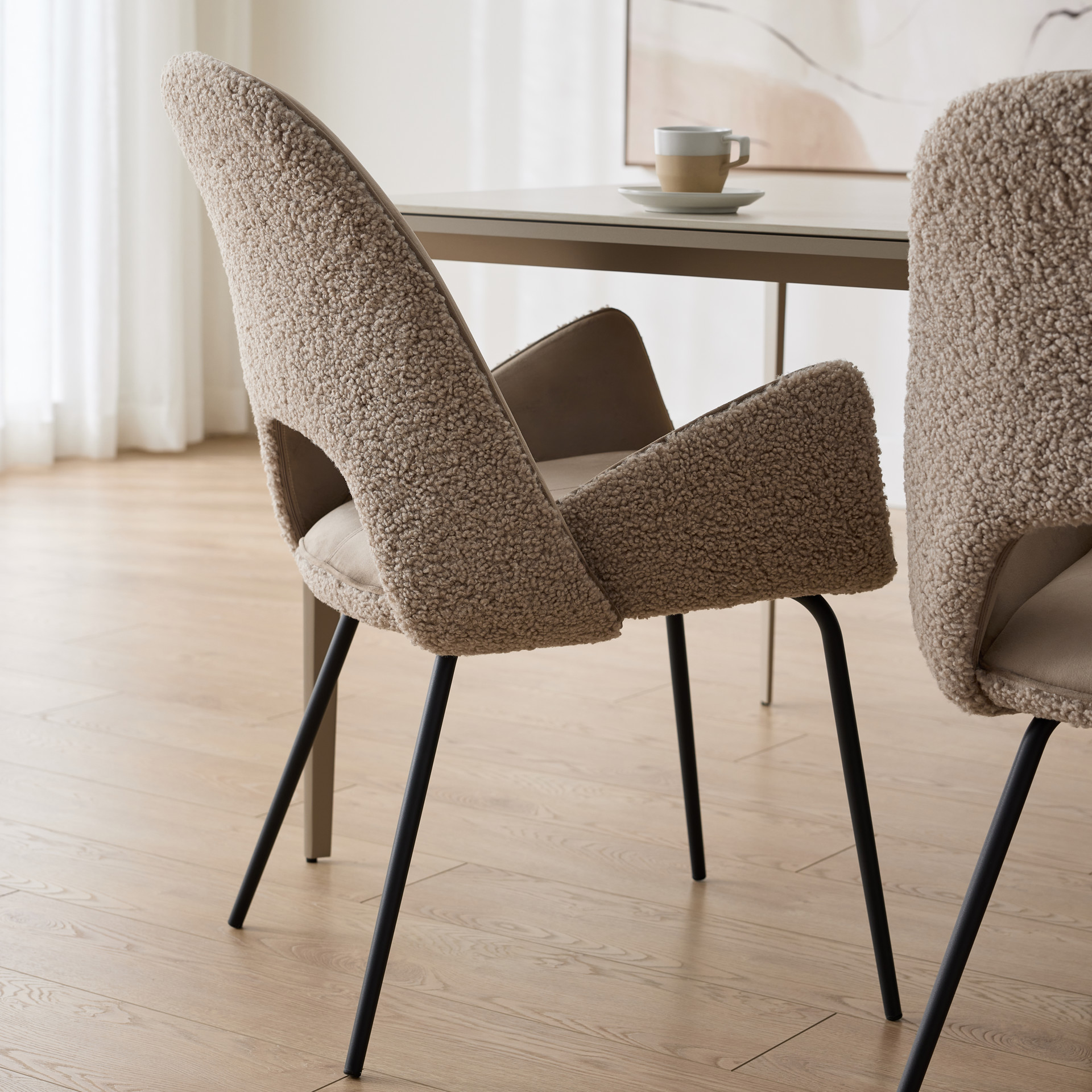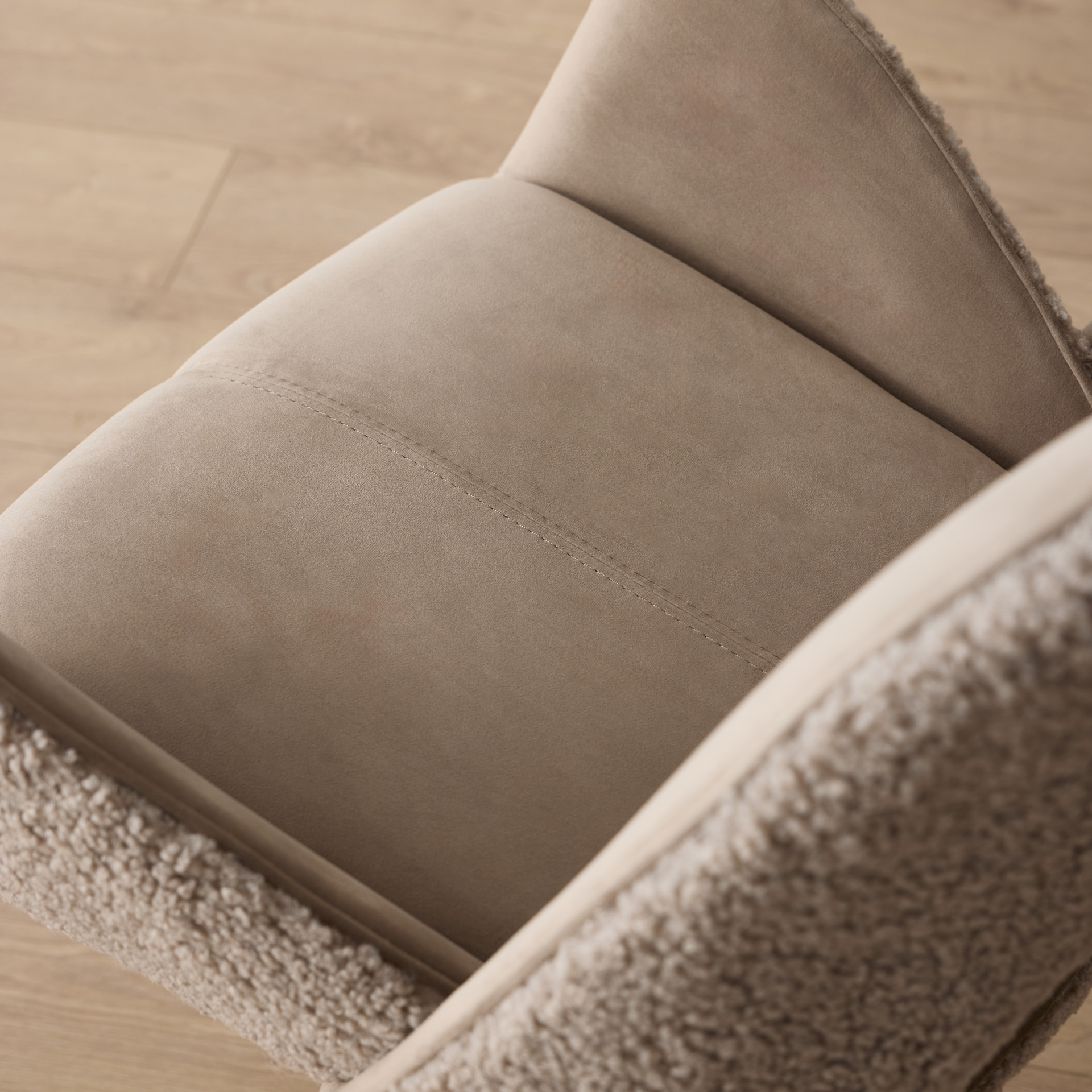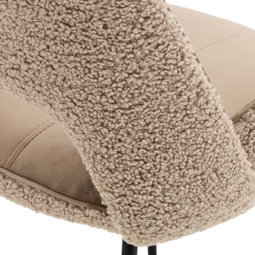 • Upholstered in teddy and ultrasuede Taupe fabric