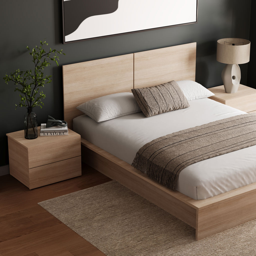 The extra-wide bedside surfaces provide both style and convenience, ideal for your books or charging devices.