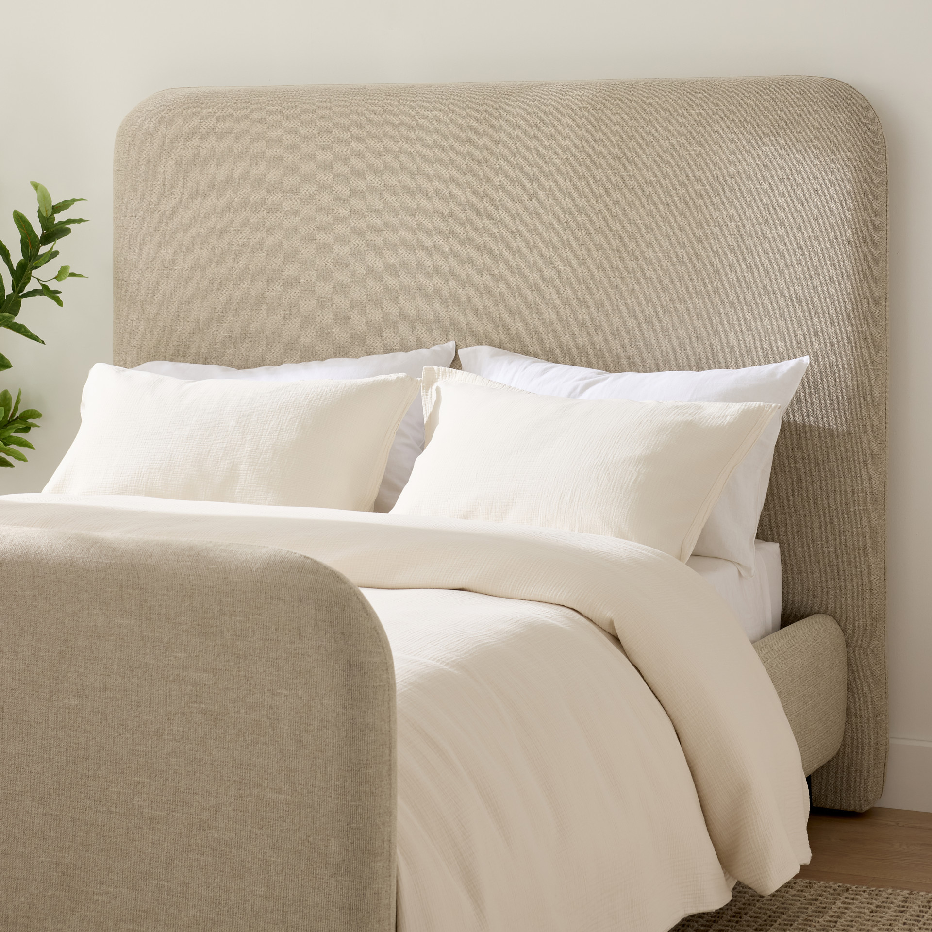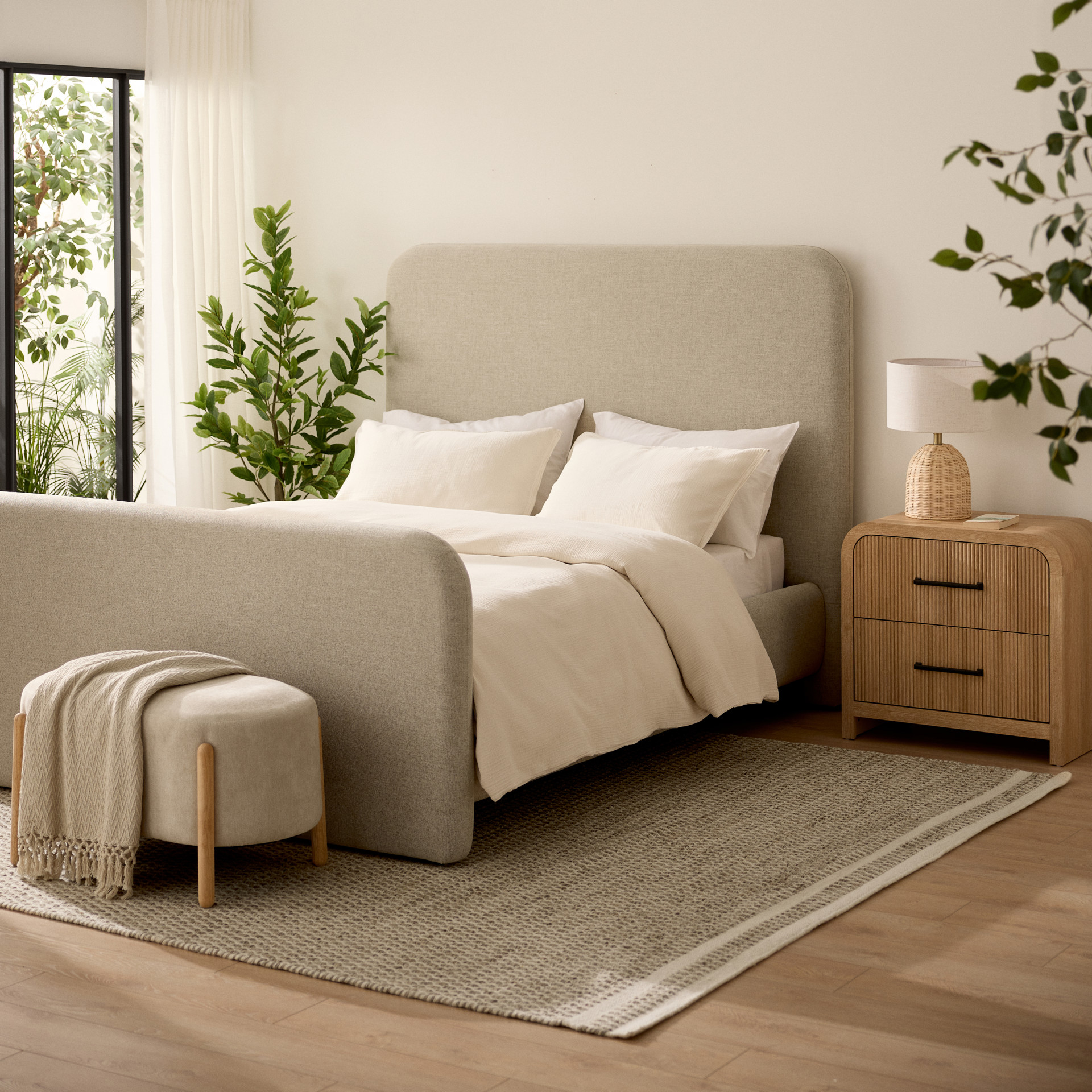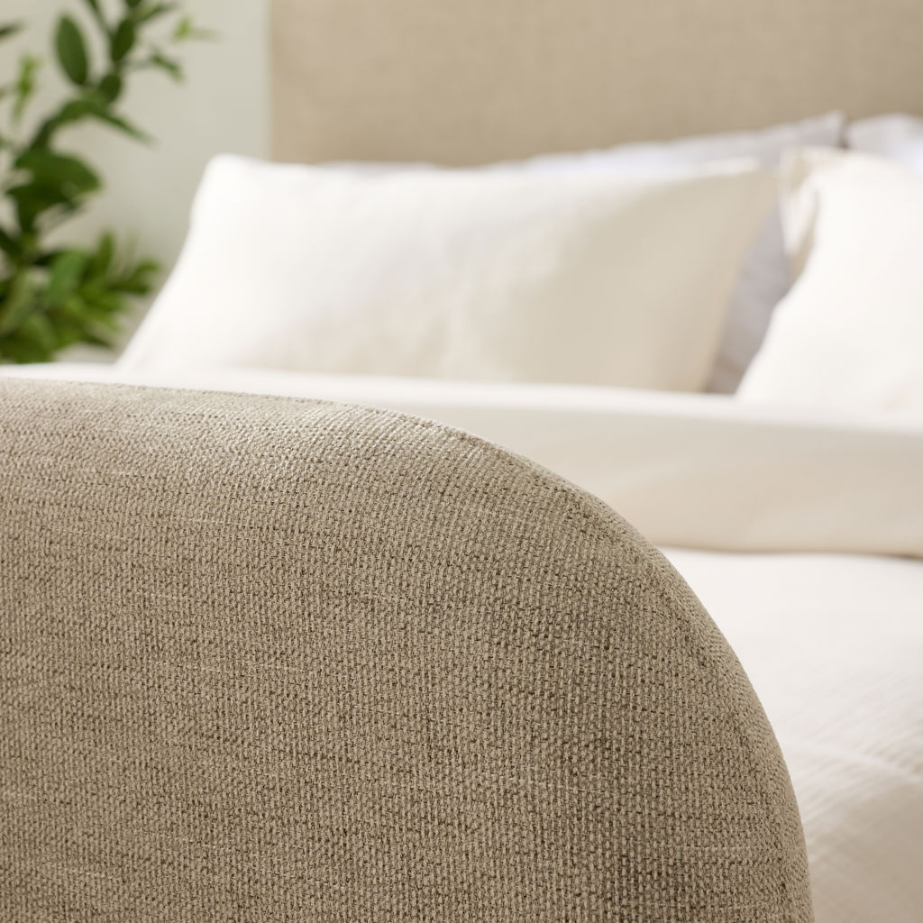 This bed is upholstered in a refined gray fabric that blends harmoniously with any decor. The clean lines and subtle curves of the Wren bed create a minimalist silhouette that exudes contemporary charm, while the plush headboard invites you to lean back and relax in style.