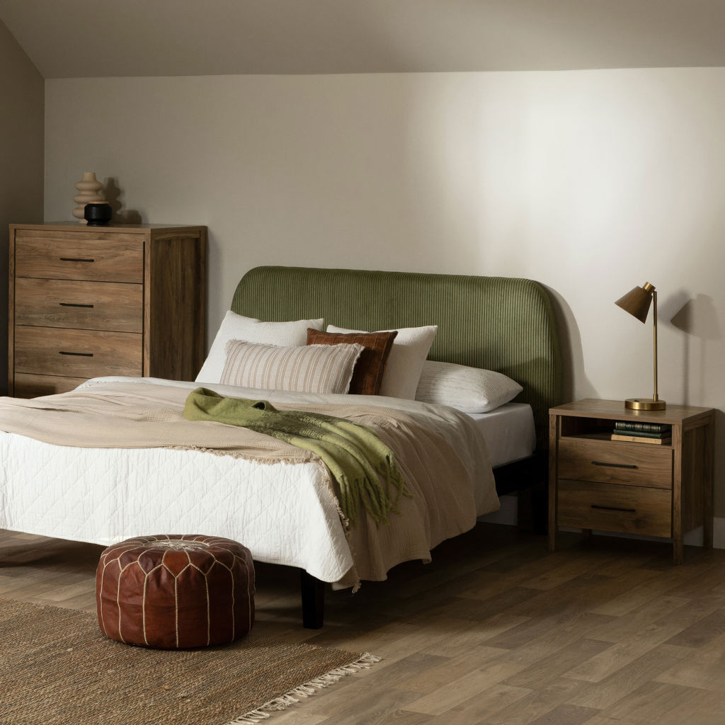 It also has a grommets in the back for better wire management. And thanks to its surface, you'll be able to keep everything you need on a regular basis close by: your cell phone, an alarm clock, a lamp to adjust the lighting, etc.