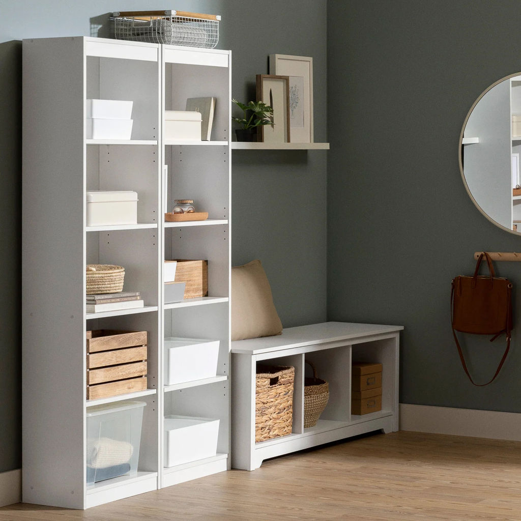 Offers 5 storage spaces separated by 1 fixed shelf that can support up to 25 lbs and 3 adjustable shelves that can support up to 15 lbs. As practical as it is versatile, this narrow shelving unit is suitable for any room.