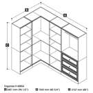 • Corner storage unit: 35. 8“ x 35. 8“ x 85“.