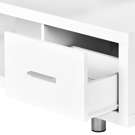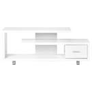 Enhance your living space with this Art Deco–inspired TV console. Crafted from thick particleboard with a white finish, it features open shelves and a storage drawer, perfect for organizing your media and accessories.