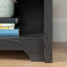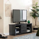 With adjustable shelves that support up to 25 pounds, this TV stand can accommodate all your devices. The bottom of the shelves is open for good ventilation. We also thought about wire management; behind the cabinet are clips to hold your wires in place so you don't see them on the floor.