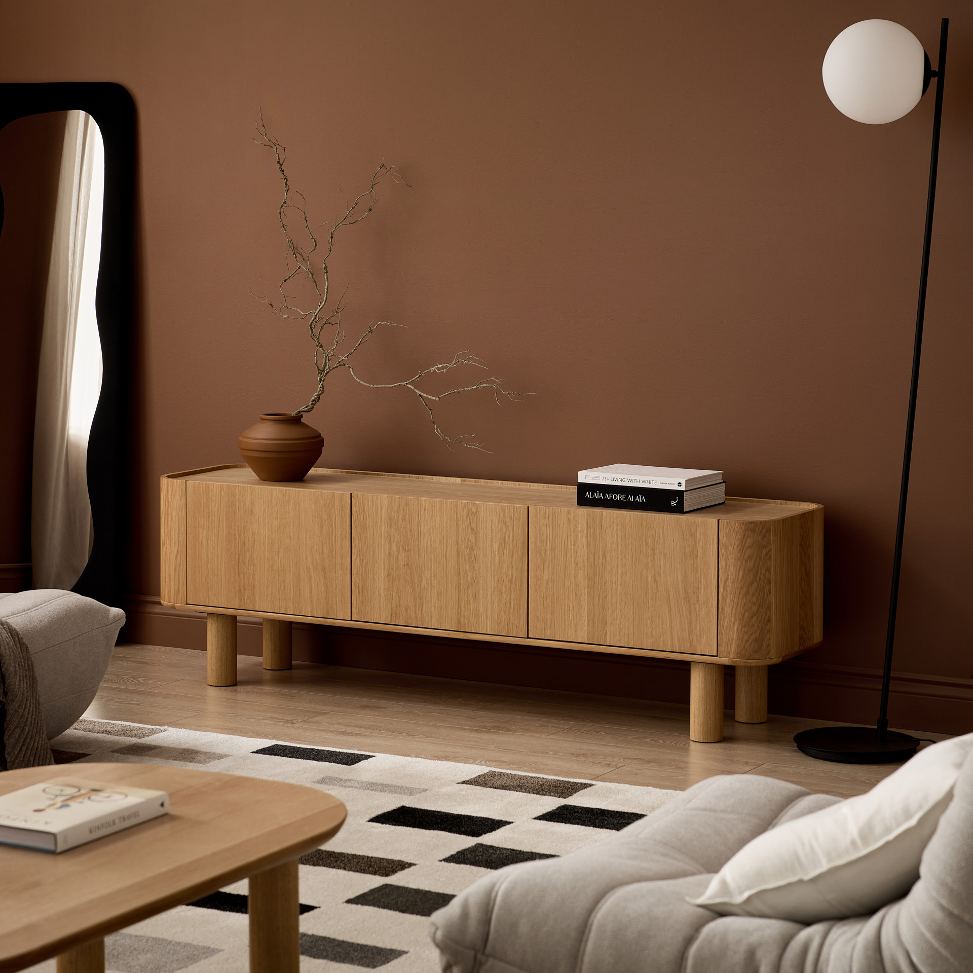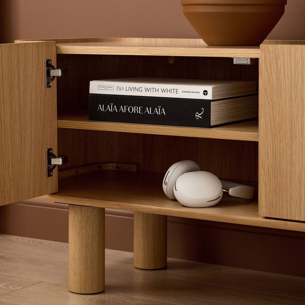 The Monsun TV Console offers optimal storage for your audiovisual equipment while bringing a touch of Nordic warmth to your living space. Closed compartments elegantly conceal cables and accessories, creating a harmonious and organized environment in your relaxation area.