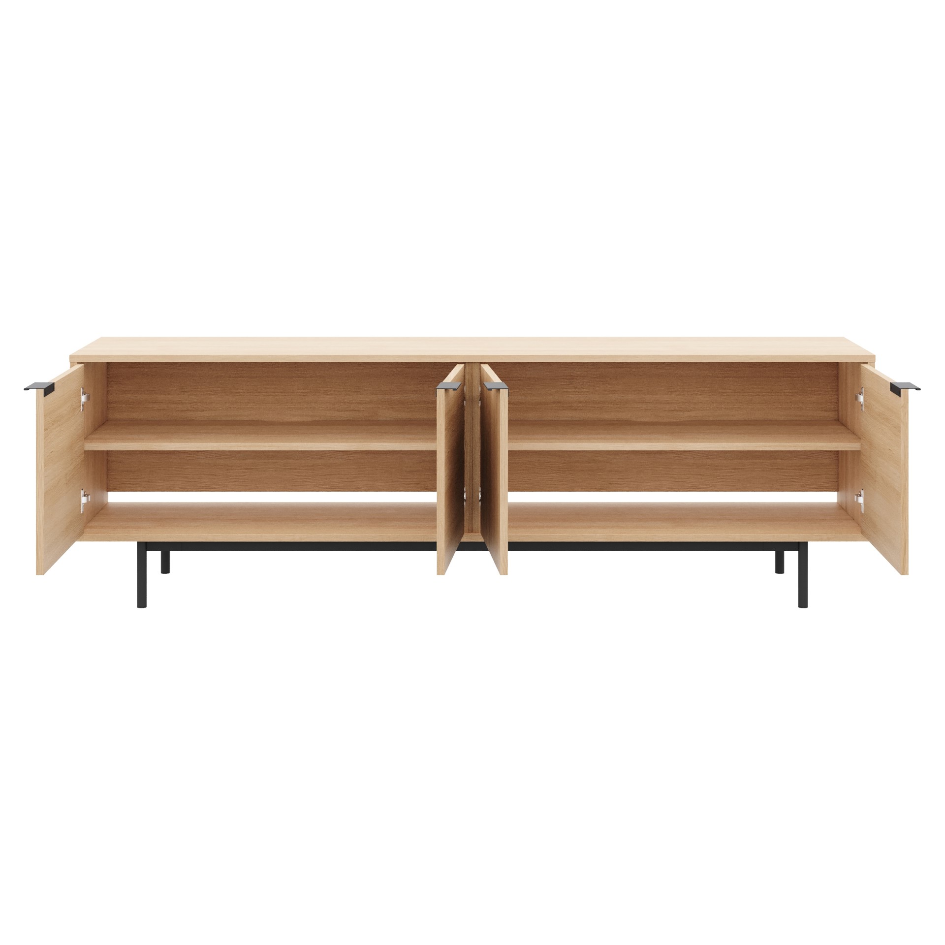 Designed with quiet elegance and refined proportions, this low-profile console features four seamless doors that open to reveal generous hidden storage.
