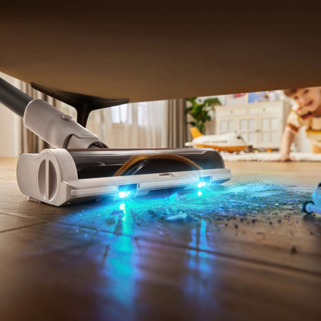 Equipped with OptiInsight technology and a V-shaped brush, this vacuum highlights hidden dust and debris for more effective cleaning on all surfaces. The multi-surface brush performs seamlessly on both hard floors and carpets for consistent results.