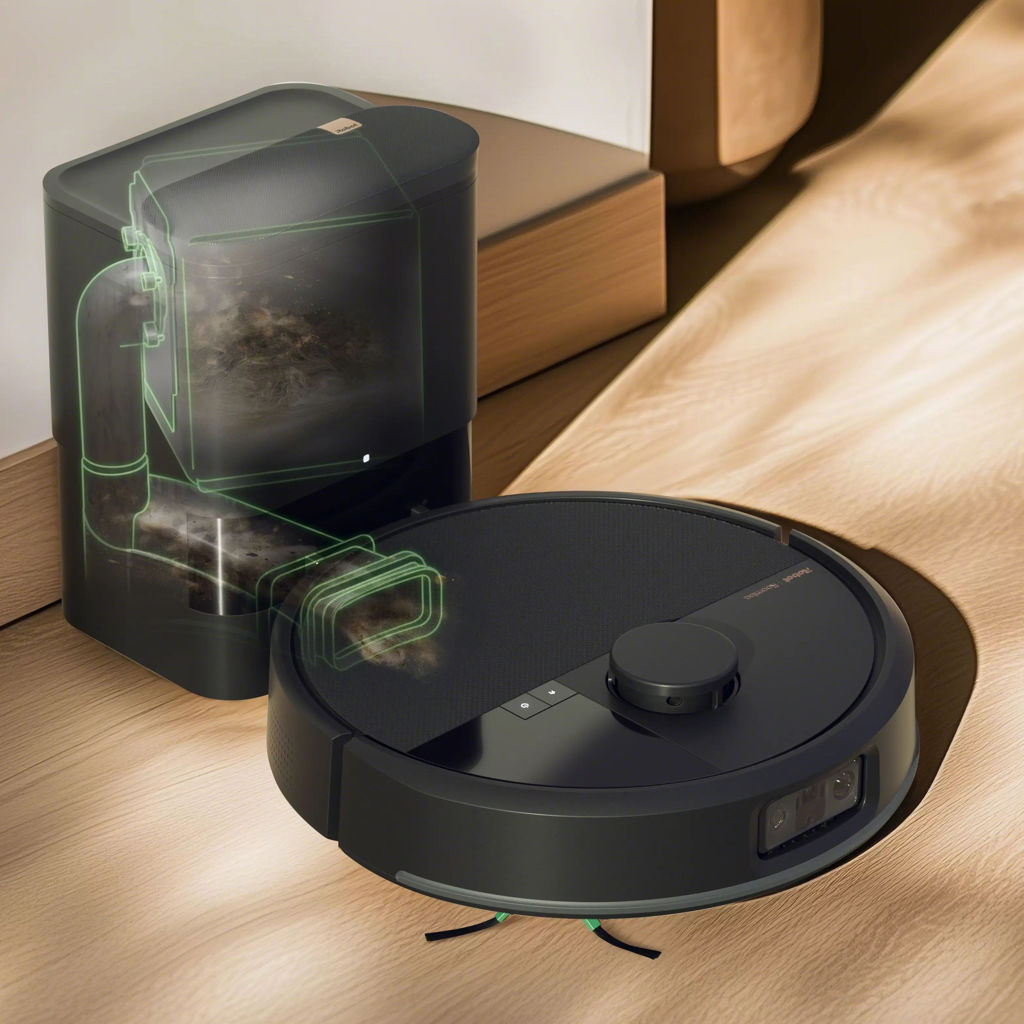 Inspired by modern design, the robot and sleek station feature refined finishes and textures that complement any décor effortlessly.