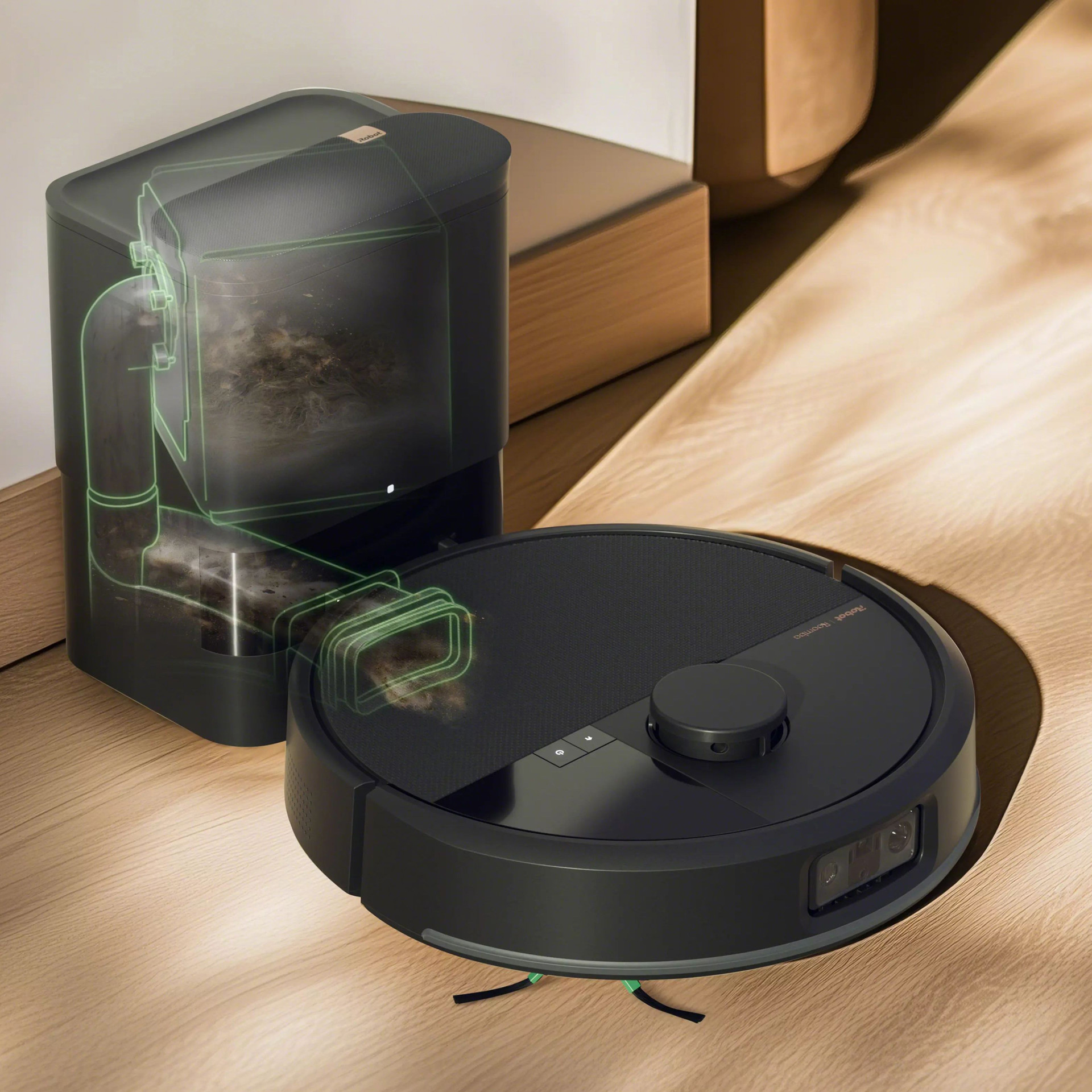 The AutoEmpty™ Station locks in and traps particles as small as 0.7 microns in a sealed bag, preventing dust clouds for up to 75 days.