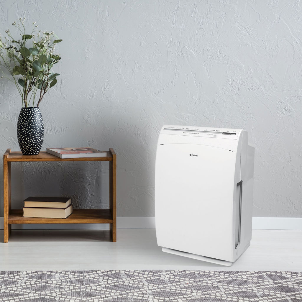 The high-efficiency GREE air purifier with HEPA air filter helps reduce airborne particles so you can breathe easier.