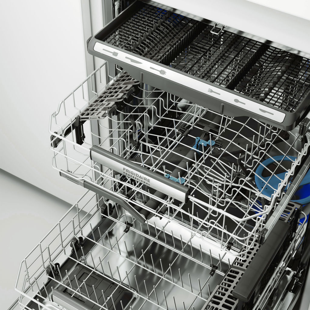 Save time loading and unloading with a third-level rack that conveniently fits cutlery, cooking utensils, and kitchen tools.
