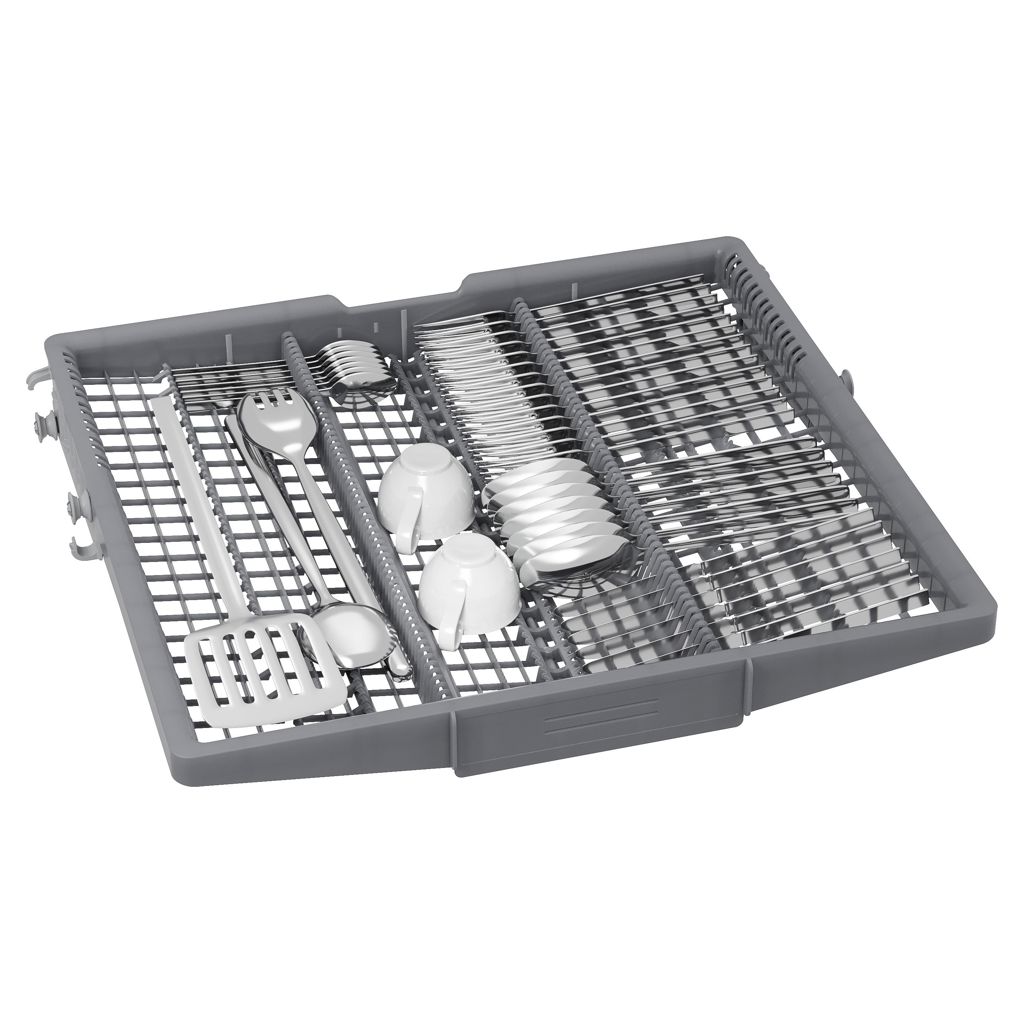 The standard 3rd rack is perfect for silverware, large utensils, and measuring cups. Its V-shape design leaves space for taller items like stemware in the middle rack.