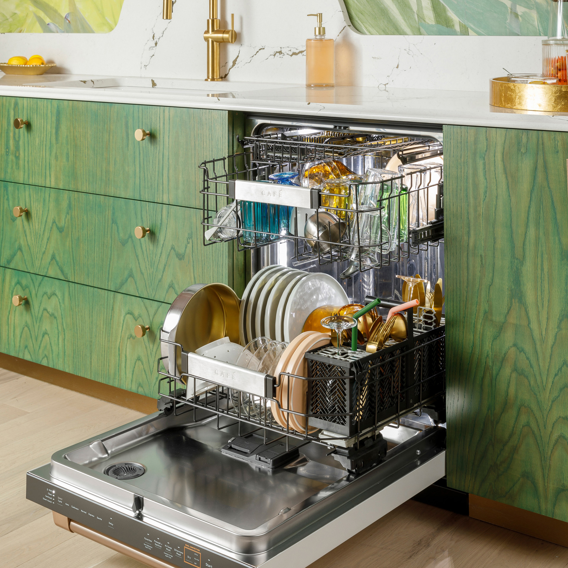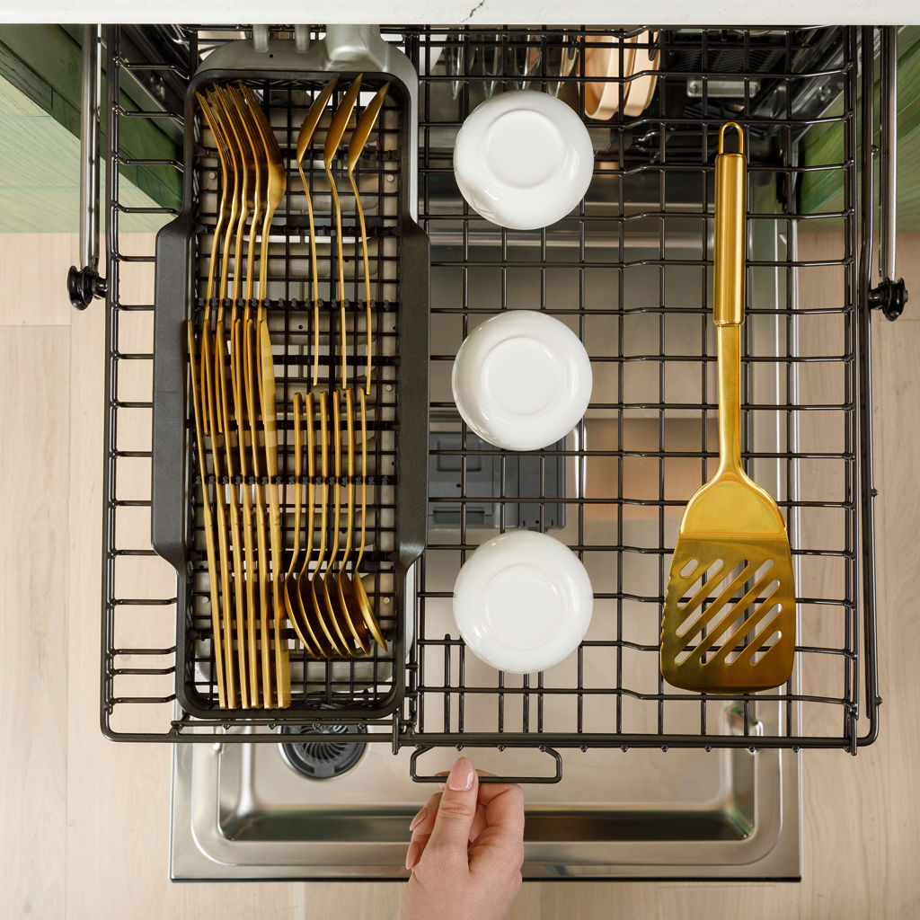 Don’t just toss in your utensils, this flexible basket comes equipped with dedicated wash jets. The CustomFit Basket can hold silverware, stemware, and reusable straws, letting you wash items that once had to be cleaned by hand.