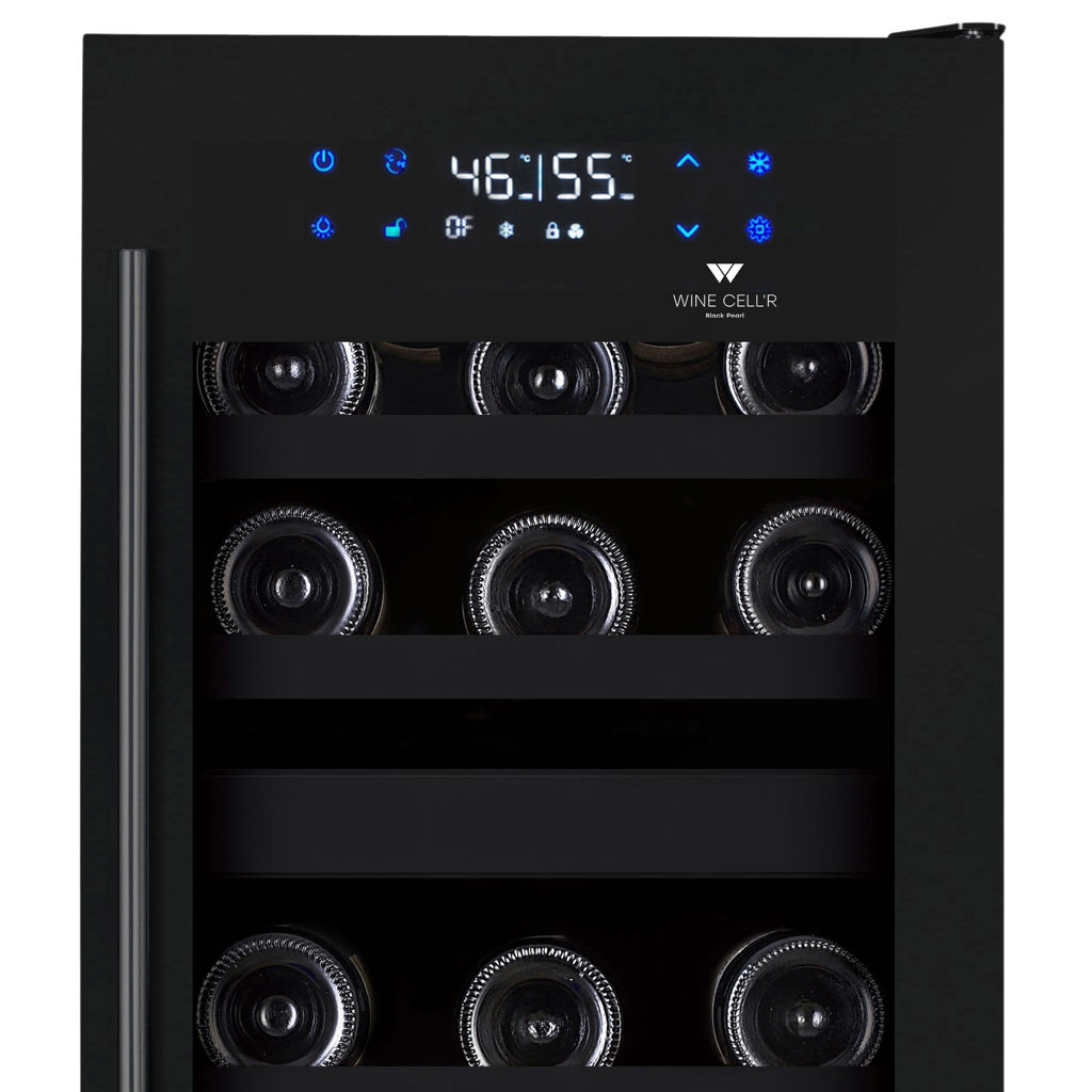 Give your wines the perfect showcase with the Black Pearl WC32FGB6 wine cellar, designed for both enthusiasts and professionals. With a 26-bottle capacity and two distinct temperature zones (5–12?°C on top, 8–19?°C on the bottom), it ensures ideal storage conditions for both red and white wines.