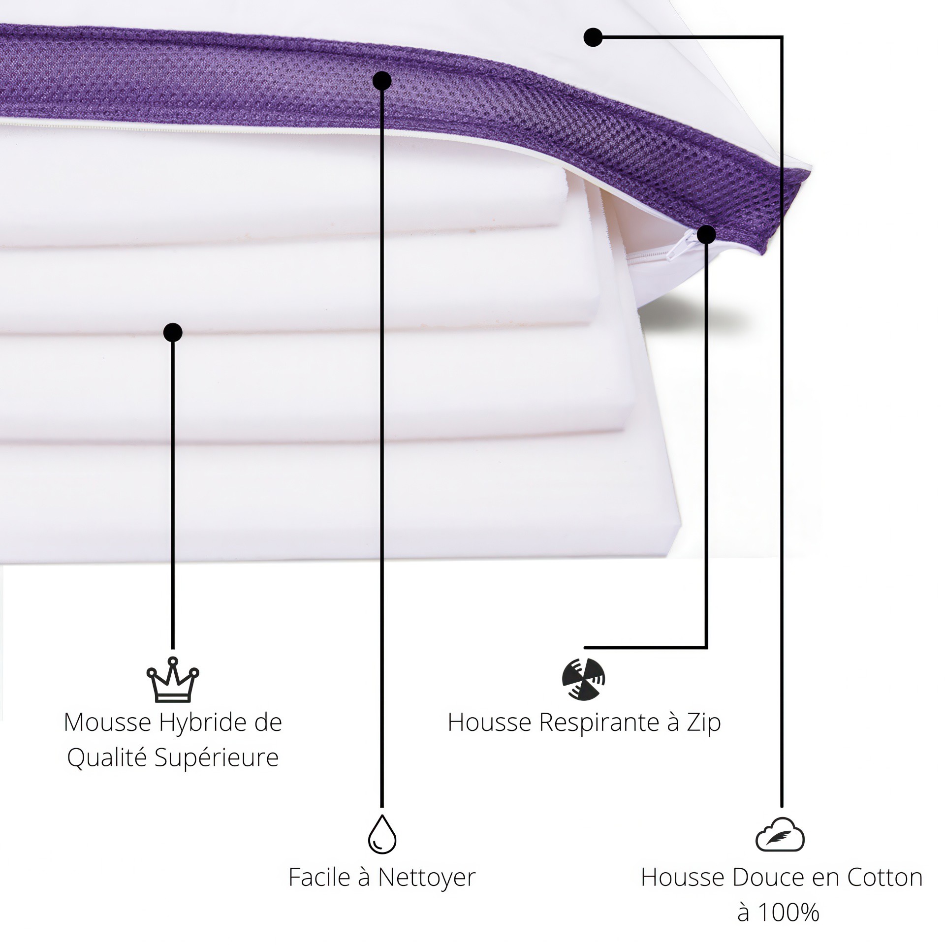 Underneath its all-cotton cover is a microfiber filling for unparalleled softness, while up to four layers of viscoelastic hybrid foam in different sizes provide the support you need for your neck and head.
