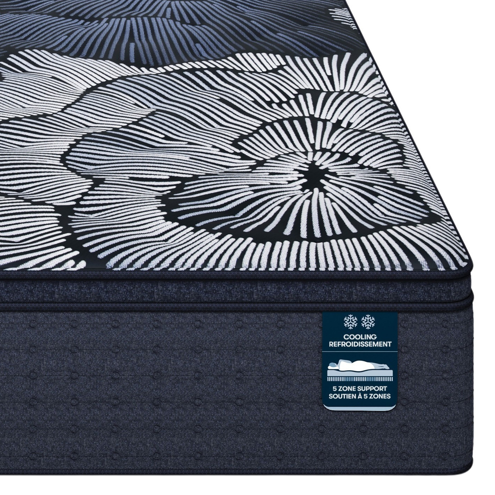Combines five zone springs and memory foam for full-body spinal alignment. Designed to provide comfort and support where you need it most.