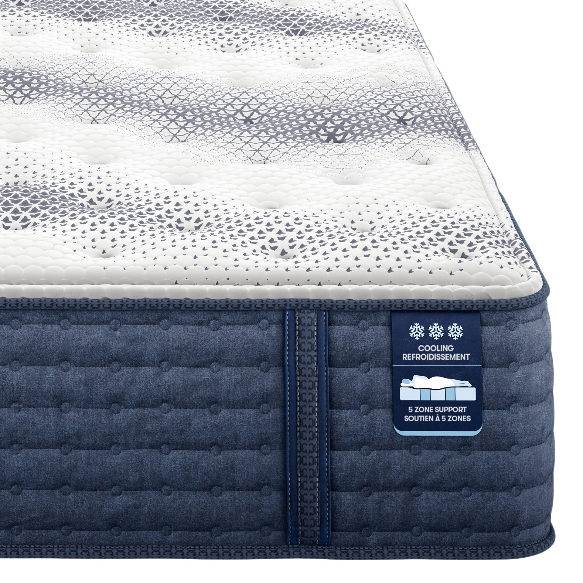 Five support zones provide improved spinal alignment and targeted support for restful sleep.