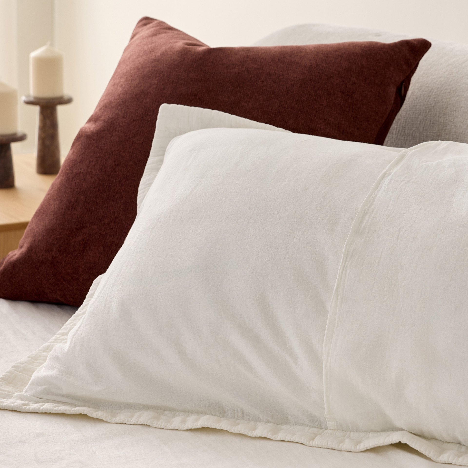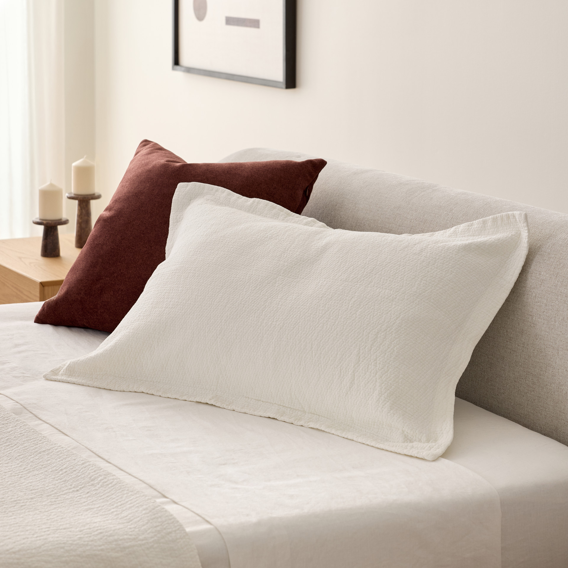 • Ivory waffle cotton pillow sham.