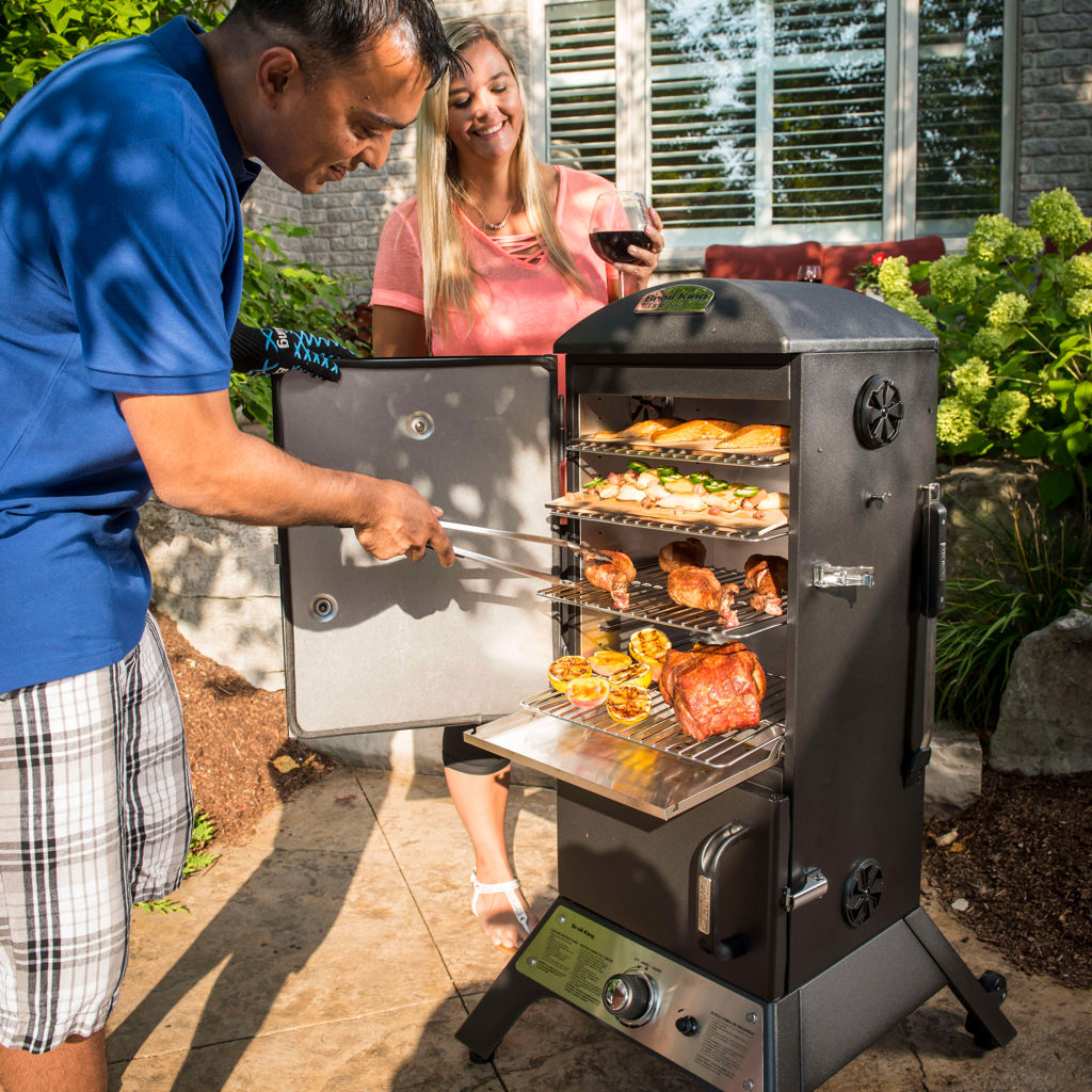 The Broil King Smoke™ vertical natural gas smoker offers a generous 770 square inches of cooking space, spread across four adjustable stainless steel cooking racks.