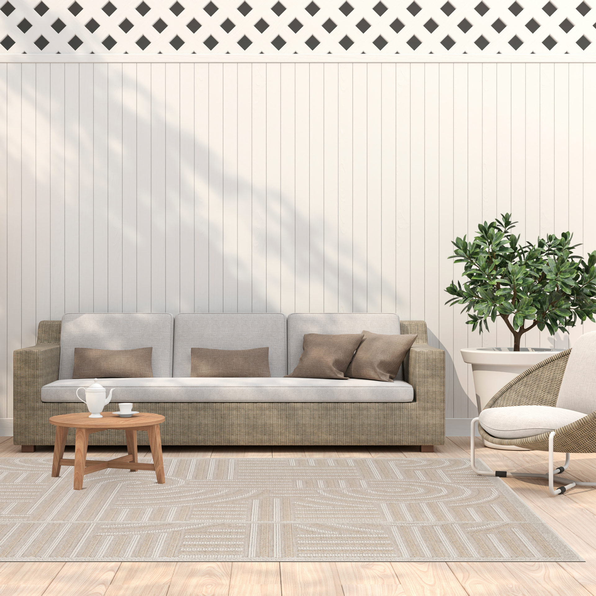Revel in its high-low texture that adds a touch of luxury, whether inside your home or on the patio.